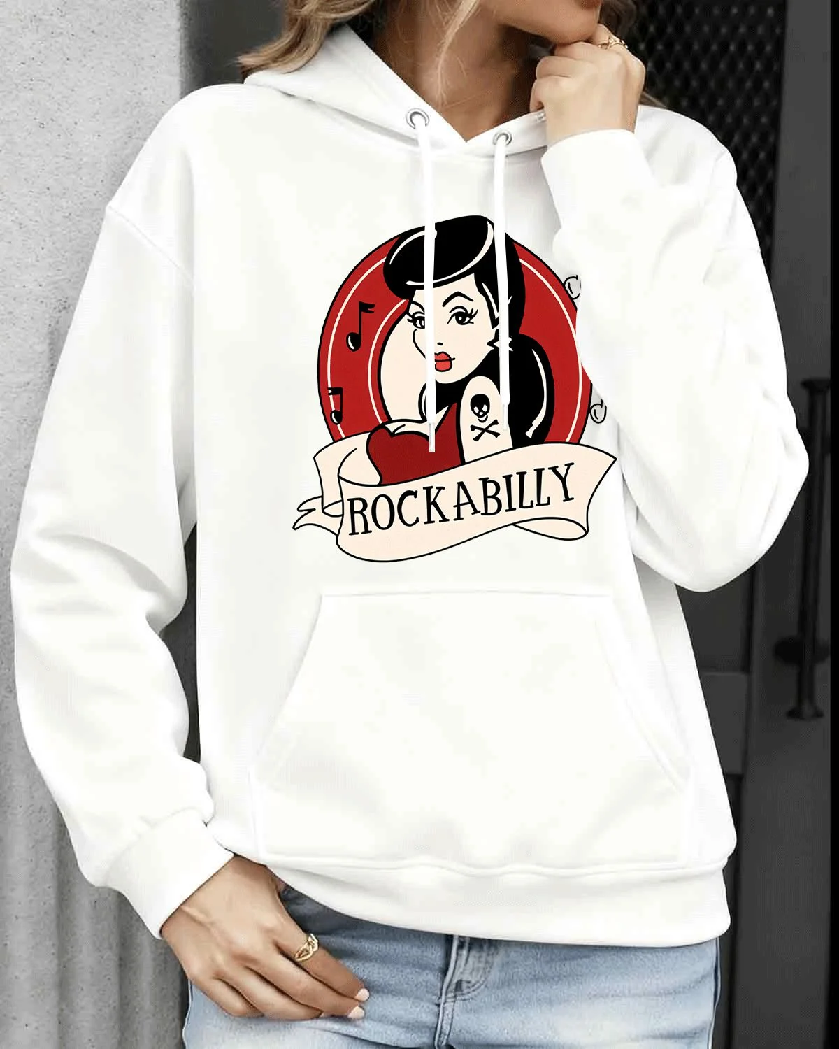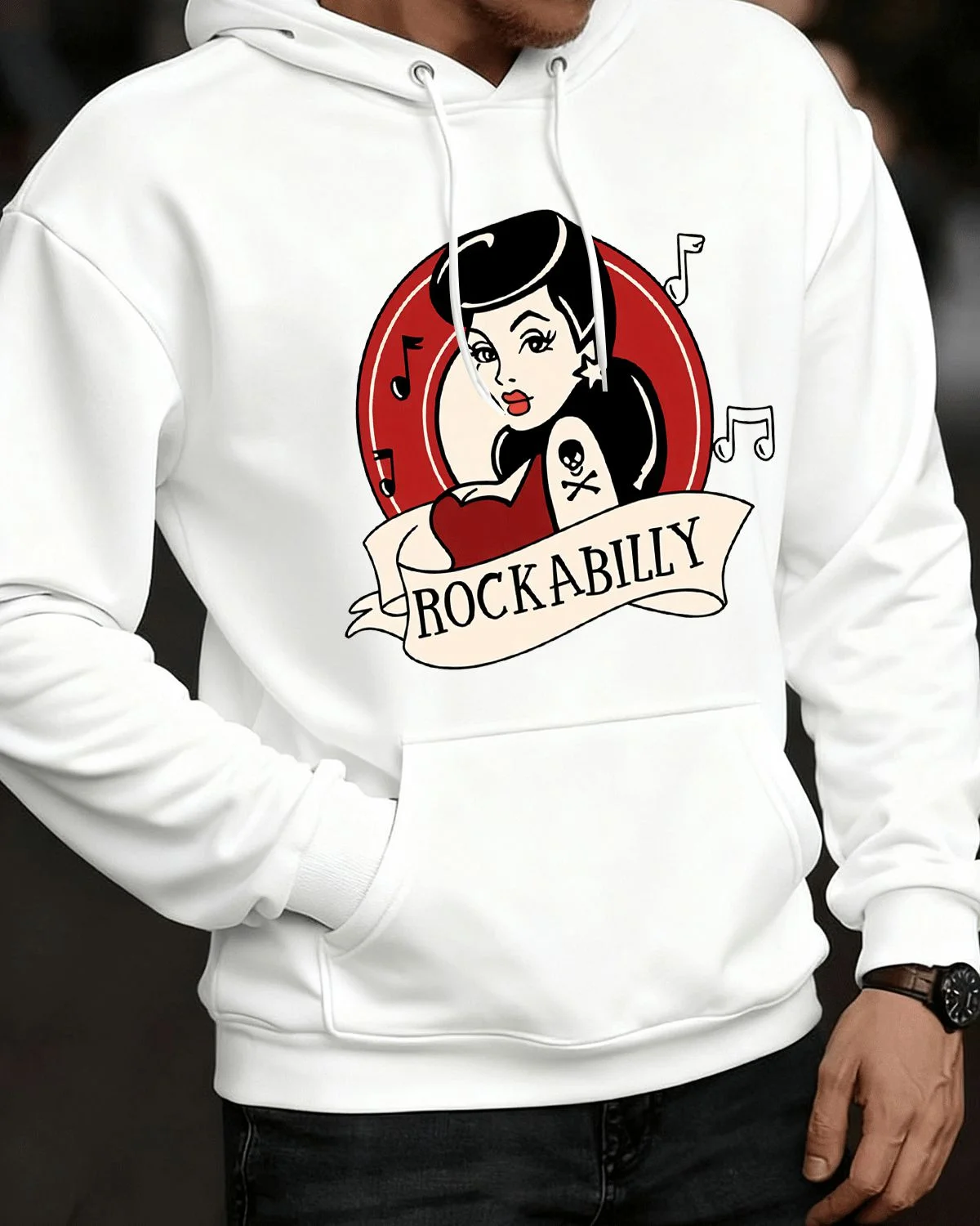 Rockabilly Music Tattoo Art Cozy Graphic Hoodie for Men and Women - Vintage Retro, Long Sleeve, Soft Fabric, Comfortable Fit