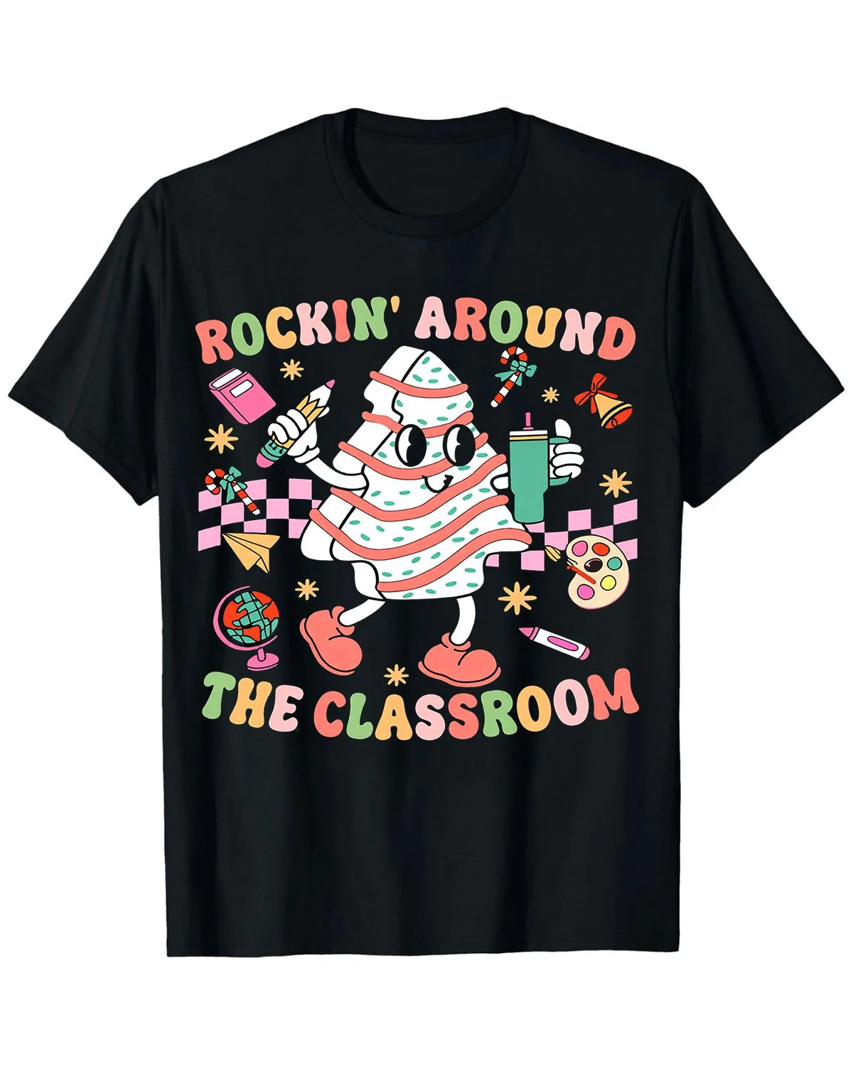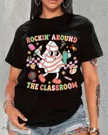 Rockin' Around the Classroom Summer Cotton Graphic T Shirt-Casual Funny,Short Sleeve,Soft Fabric,Comfortable Fit