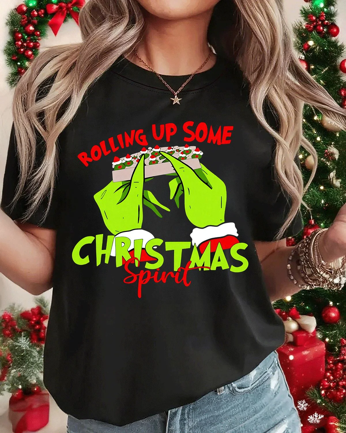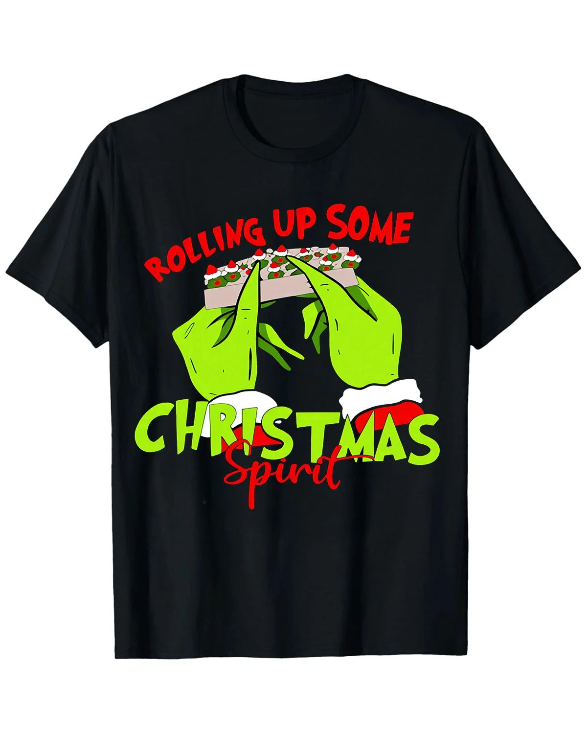 Rolling Up Some Christmas Spirit Summer Cotton Graphic T Shirt - Funny Graphic, Short Sleeve, Soft Fabric, Comfortable Fit
