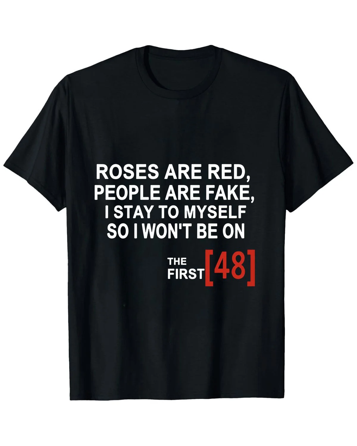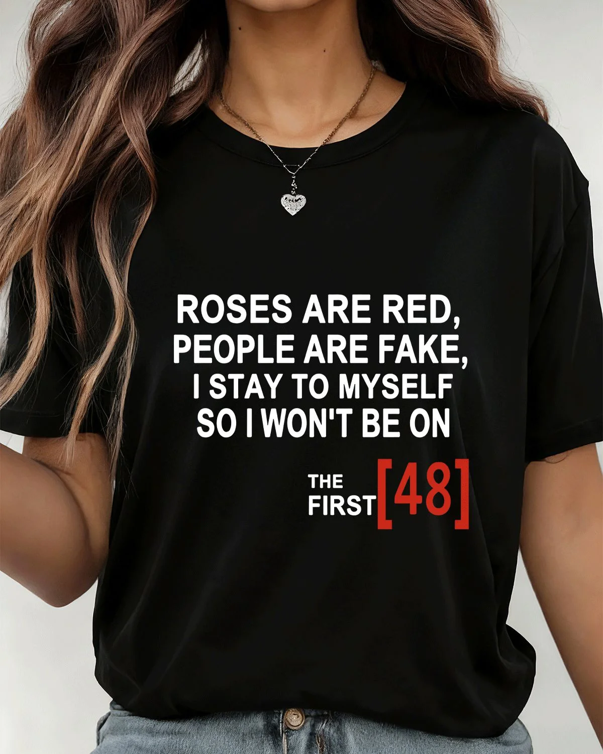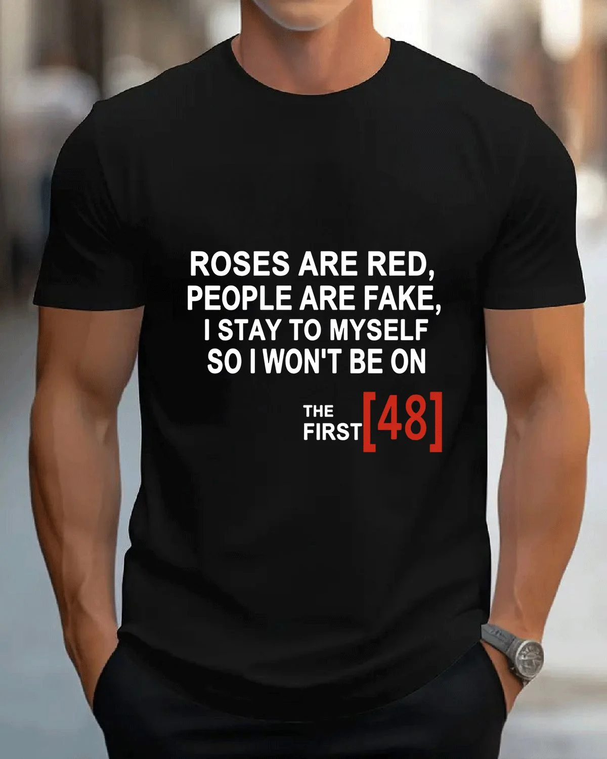 Roses Are Red People Are Fake Summer Cotton Graphic T Shirt - Casual Funny,Short Sleeve,Soft Fabric,Comfortable Fit