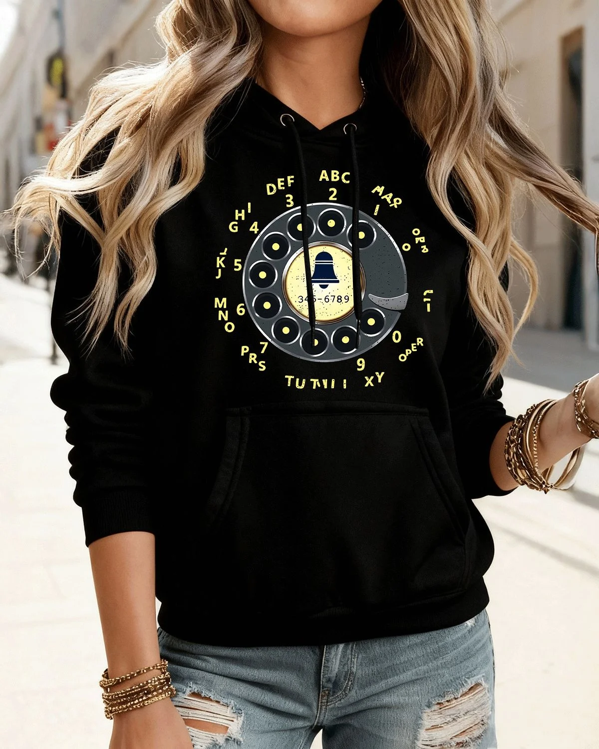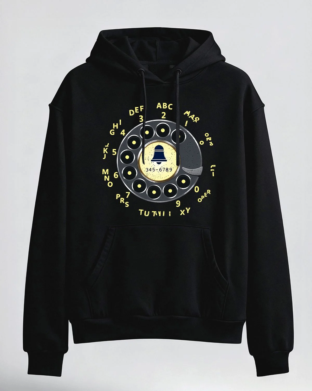 Rotary Phone Dial Bell 345-6789 Cozy Graphic Hoodie for Men and Women - Vintage Retro, Long Sleeve, Soft Fabric, Comfortable Fit
