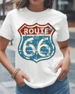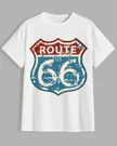 Route 66 US Highway Vintage Sign Summer Cotton Graphic T Shirt - Casual Retro, Short Sleeve, Soft Fabric, Comfortable Fit