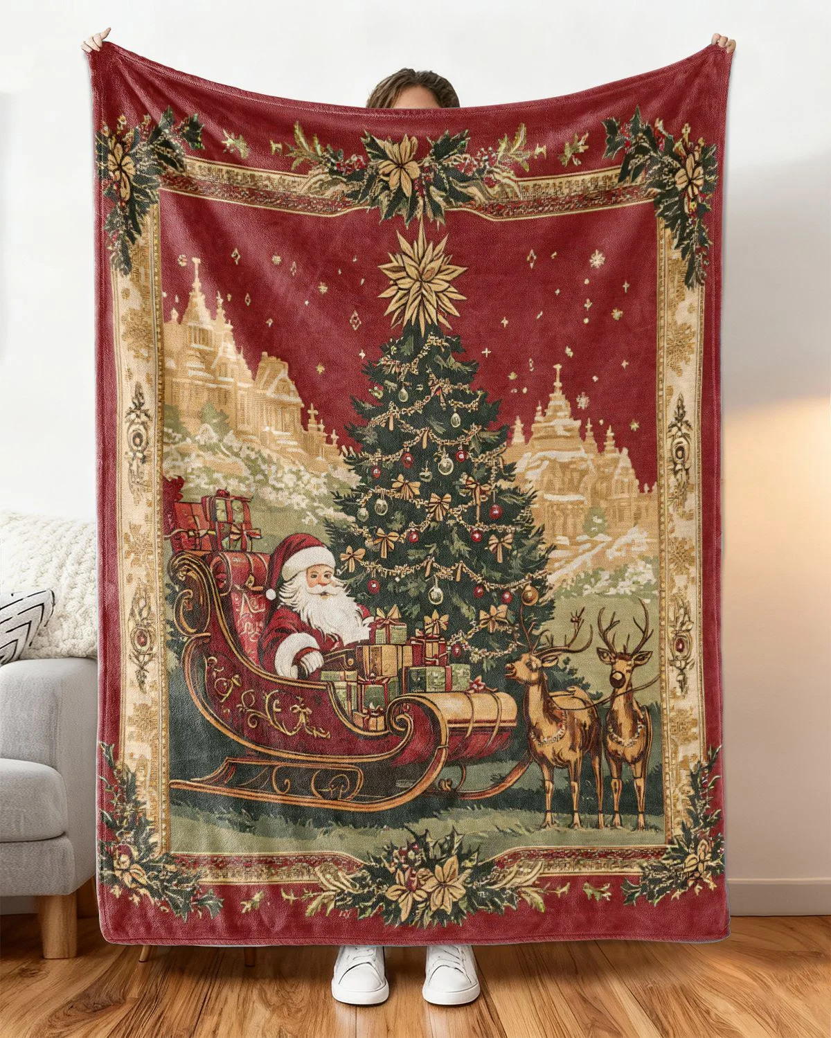 Santa Christmas Love and Holiday Blessings Blanket-Cozy Classic,Warm,Plush,Durable,For Couch,Bedroom Use