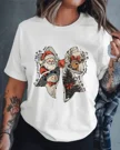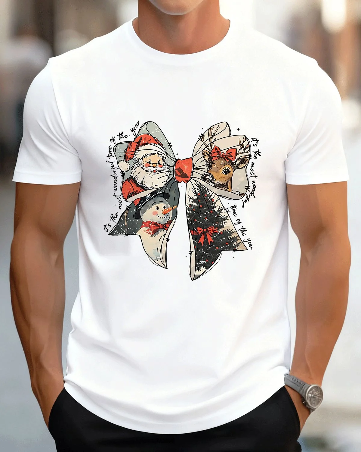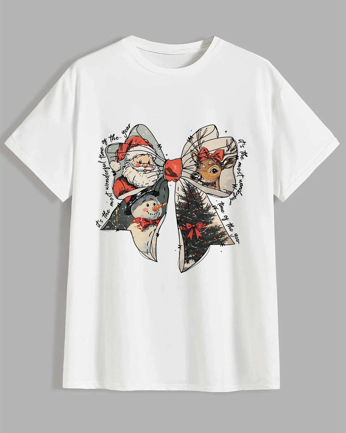 Santa Snowman Reindeer Christmas Bow Summer Cotton Graphic T Shirt - Vintage Artistic,Short Sleeve,Soft Fabric,Comfortable Fit
