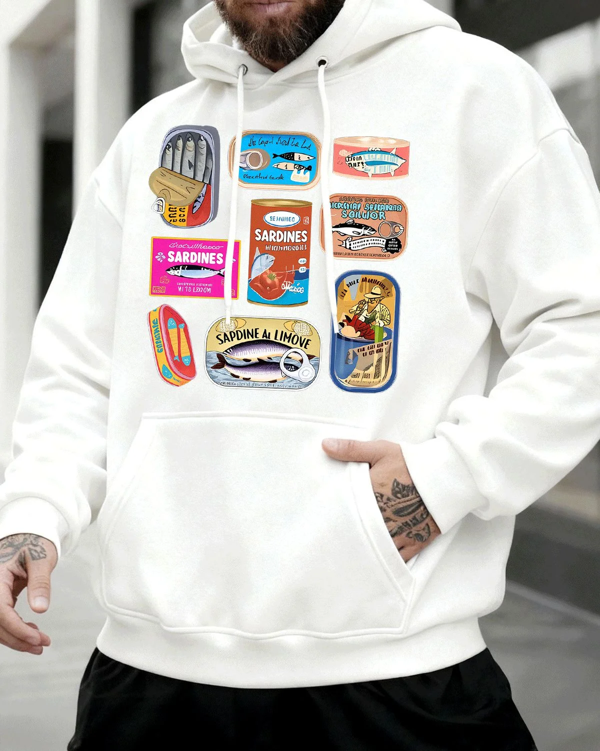 Sardines Variety Can Art Cozy Graphic Hoodie for Men and Women - Vintage Artistic, Long Sleeve, Soft Fabric, Comfortable Fit