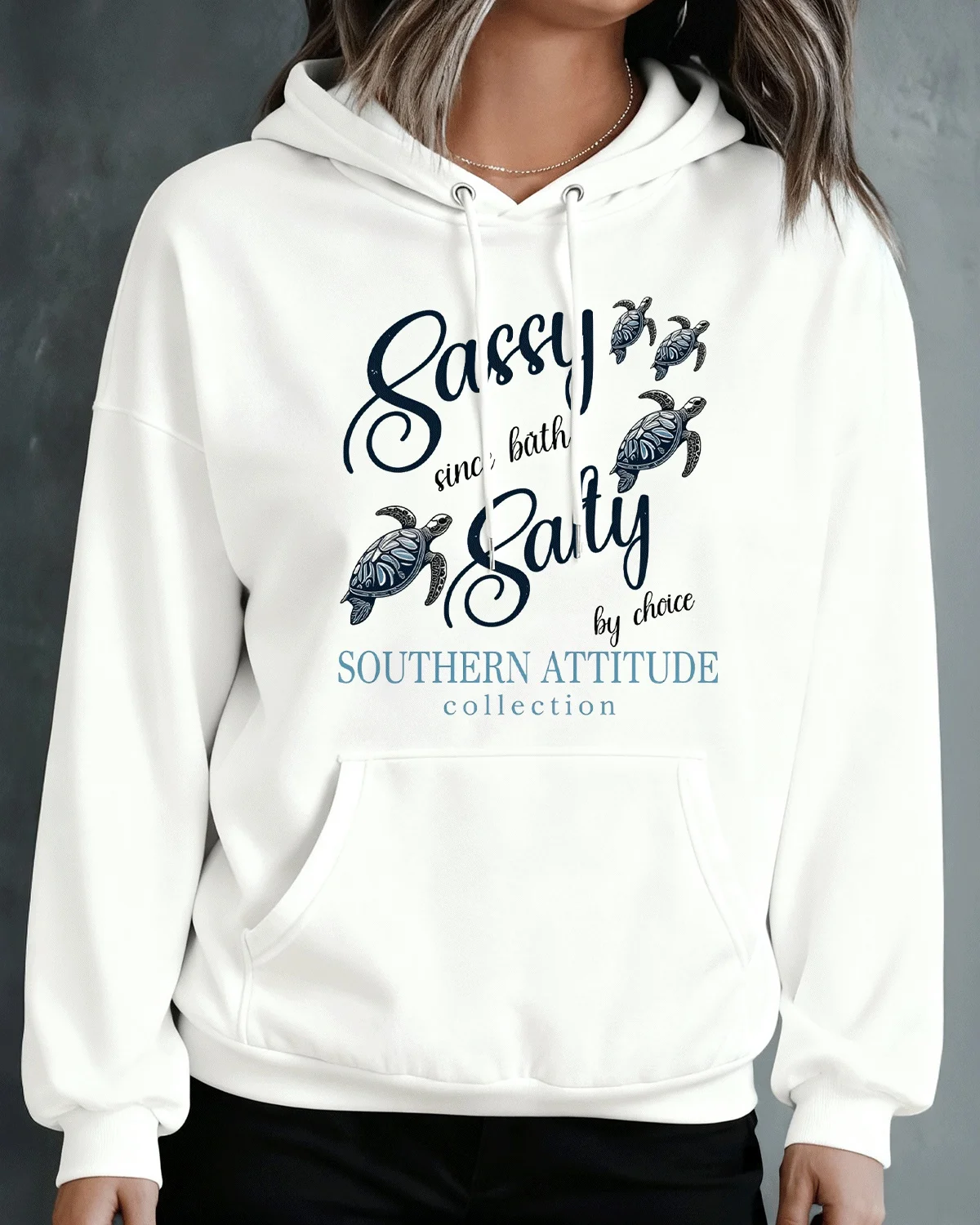 Sassy Since Birth Salty Sea Turtles Cozy Cotton Graphic Hoodie-Casual Vintage,Long Sleeves,Soft Fabric,Comfortable Fit