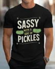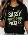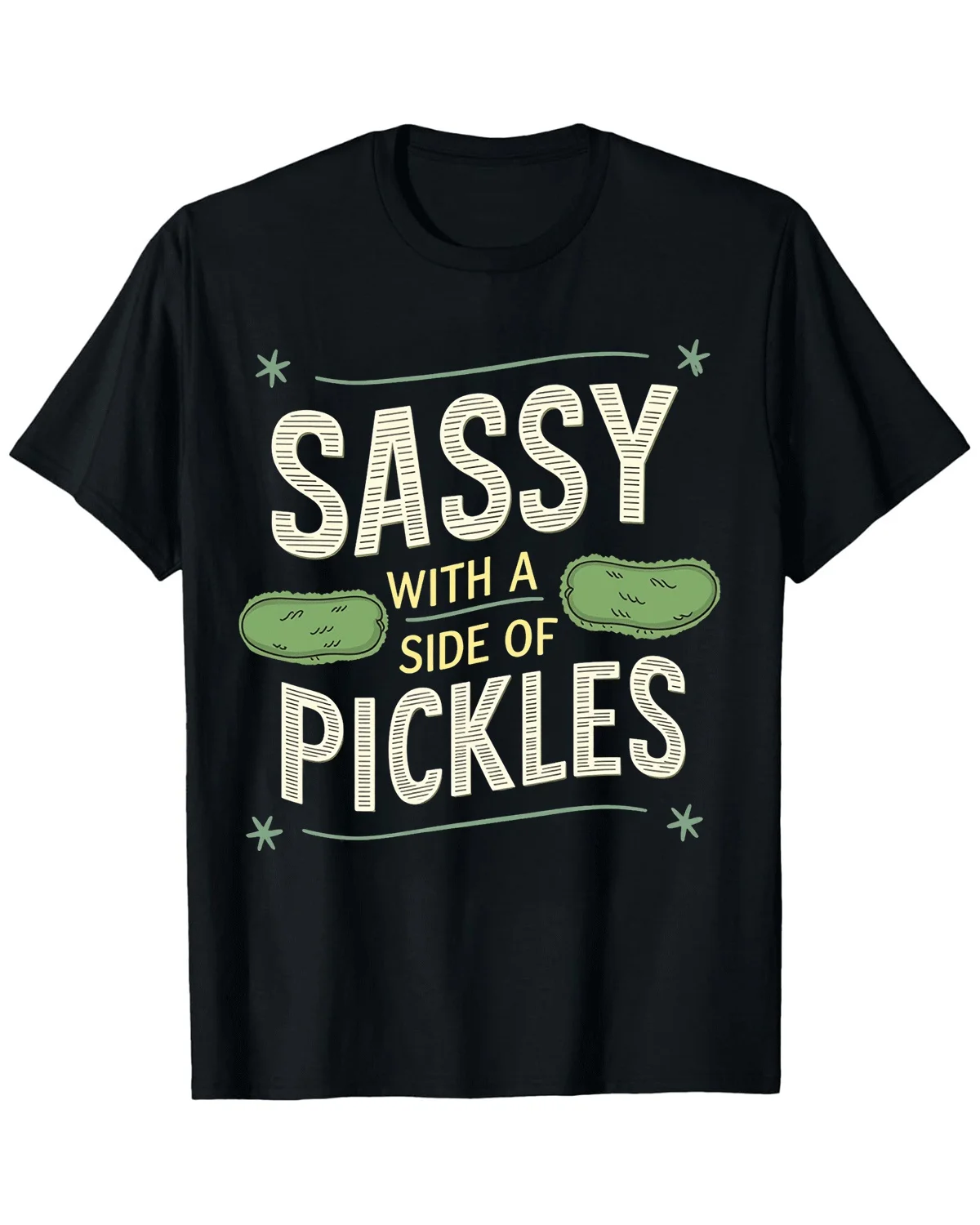 Sassy With a Side of Pickles Summer Cotton Graphic T Shirt-Casual Funny,Short Sleeve,Soft Fabric,Comfortable Fit