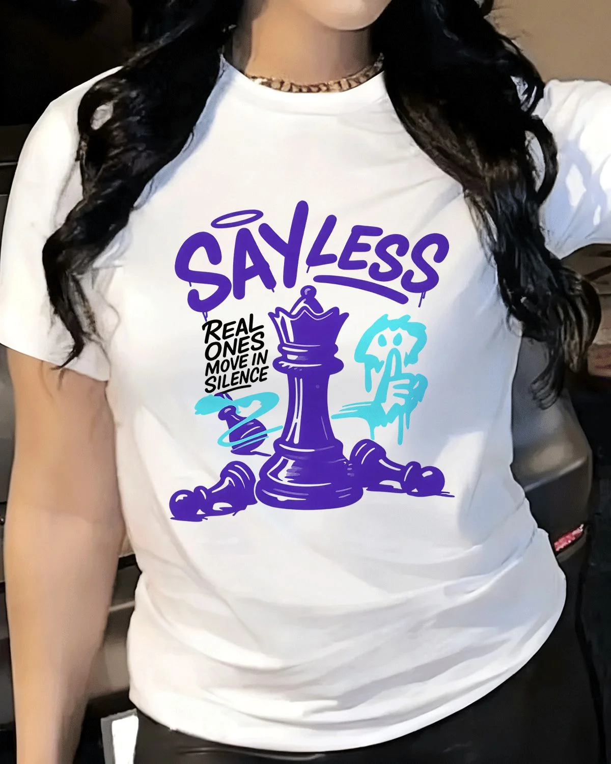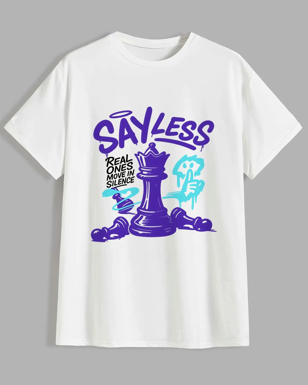 Say Less Real Ones Move in Silence Chess Summer Cotton Graphic T Shirt - Urban Cool,Short Sleeve,Soft Fabric,Comfortable Fit