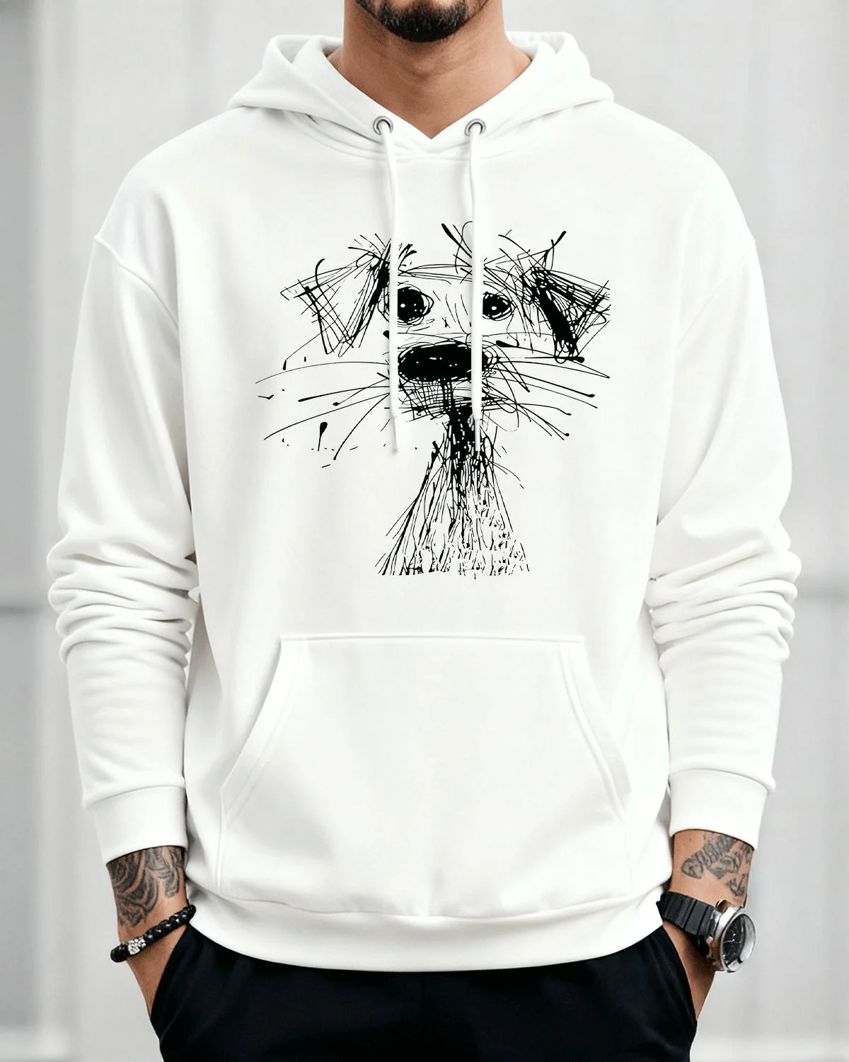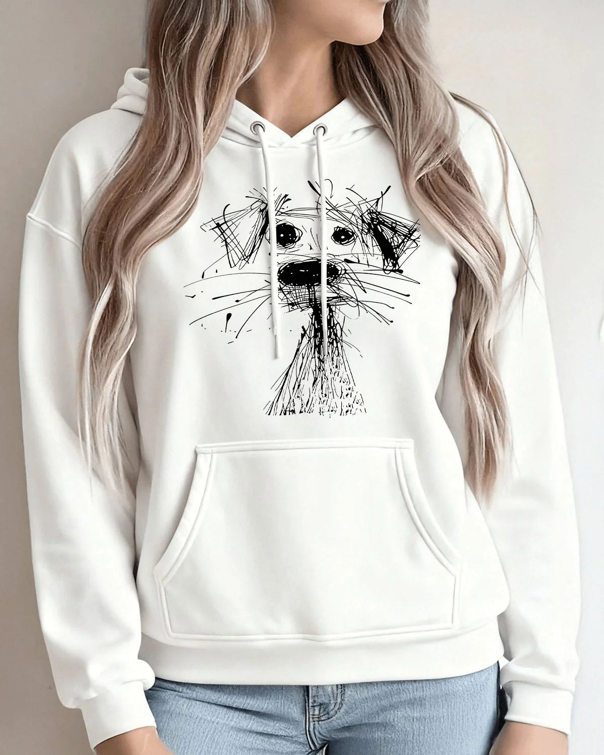 Scribble Sketch Dog Face Summer Cozy Graphic Hoodie - Artistic Retro, Long Sleeve, Soft Fabric, Comfortable Fit