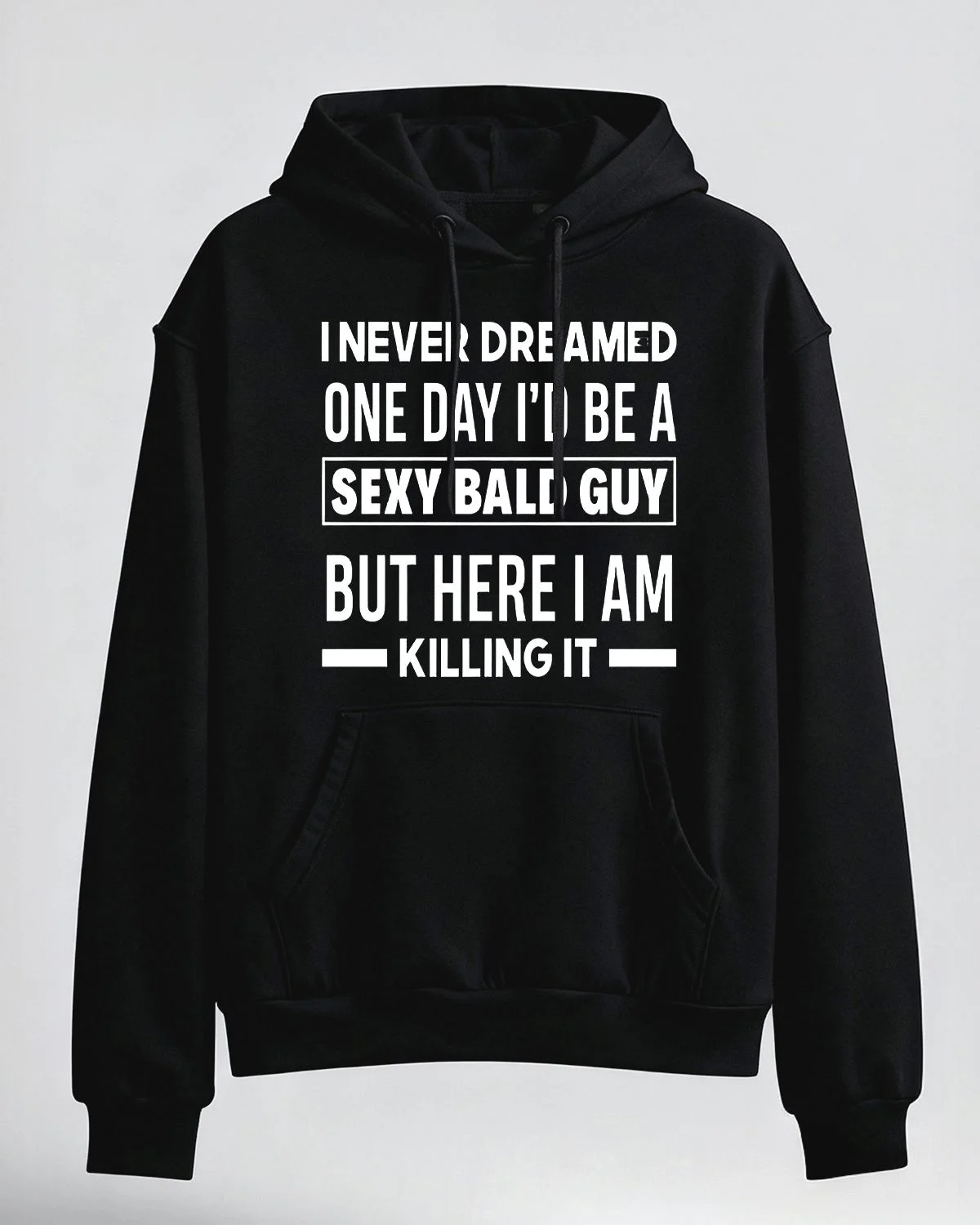 Sexy Bald Guy Killing It Summer Cozy Graphic Hoodie-Casual Funny,Long Sleeve,Soft Fabric,Comfortable Fit