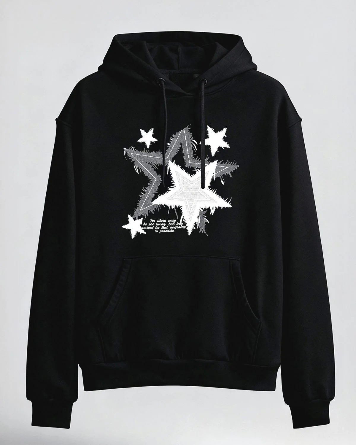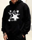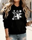 Shining Silver Stars Cozy Cotton Graphic Hoodie with Pocket-Vintage Artistic,Long Sleeve,Soft Fabric,Comfortable Fit