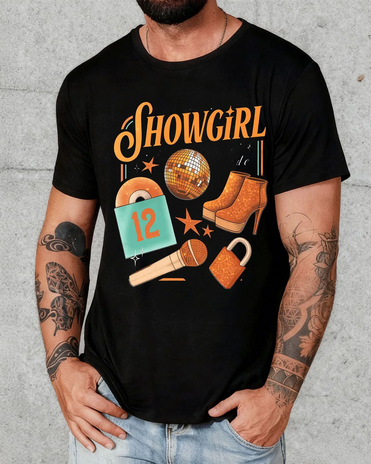 Showgirl 12 Disco Microphone and Boots Summer Cotton Graphic T Shirt-Vintage Retro,Short Sleeve,Soft Fabric,Comfortable Fit