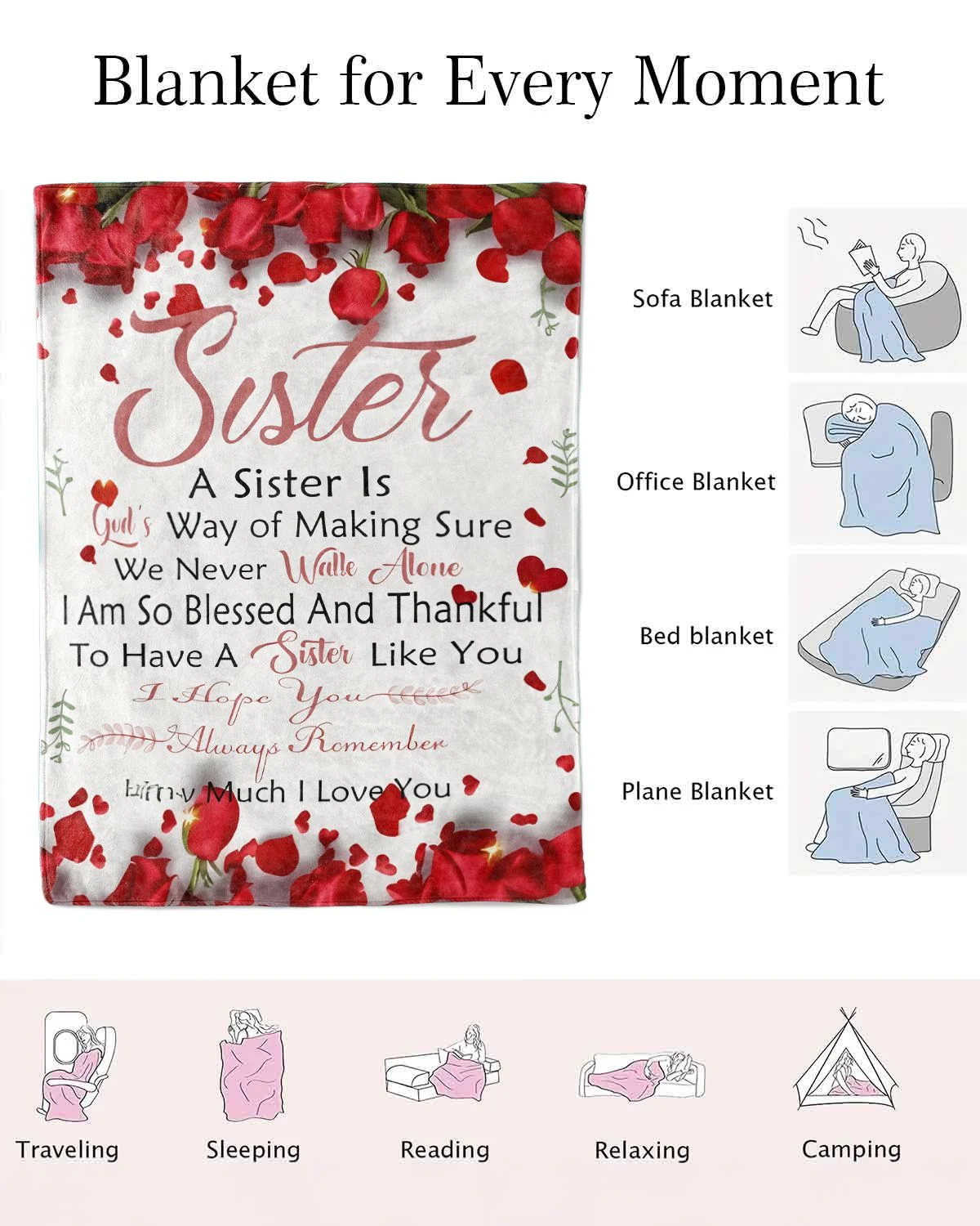 Sister Love and Gratitude Letter Cozy Flannel Blanket-Classic,Cute,Super Soft,Warm,Lightweight,For Couch,For Bed