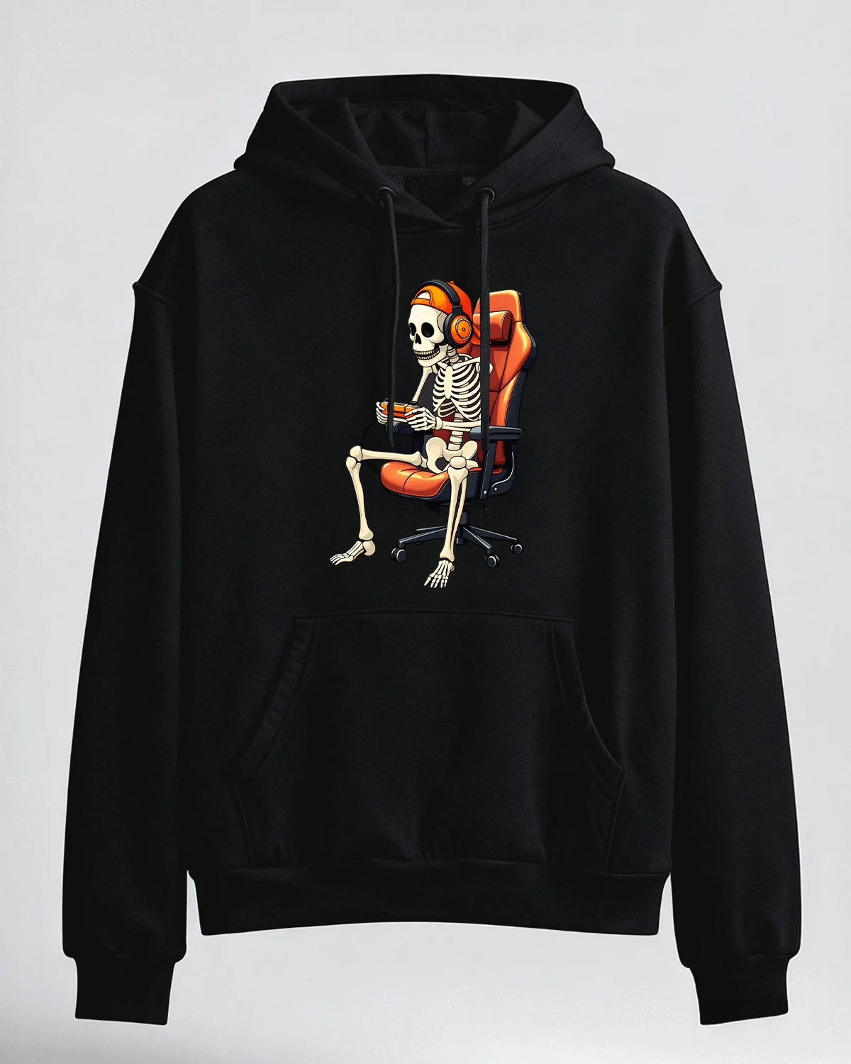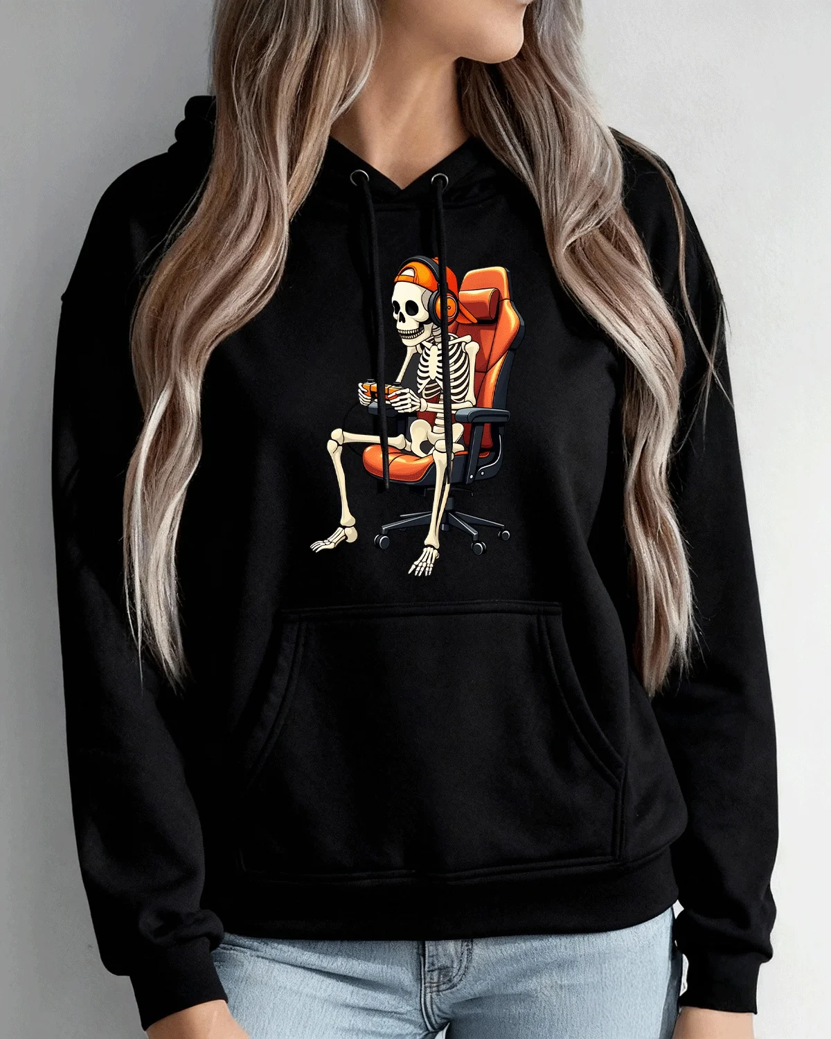 Skeleton Gamer Headphones and Controller Cozy Cotton Graphic Hoodie-Casual Retro,Long Sleeves,Soft Fabric,Comfortable Fit