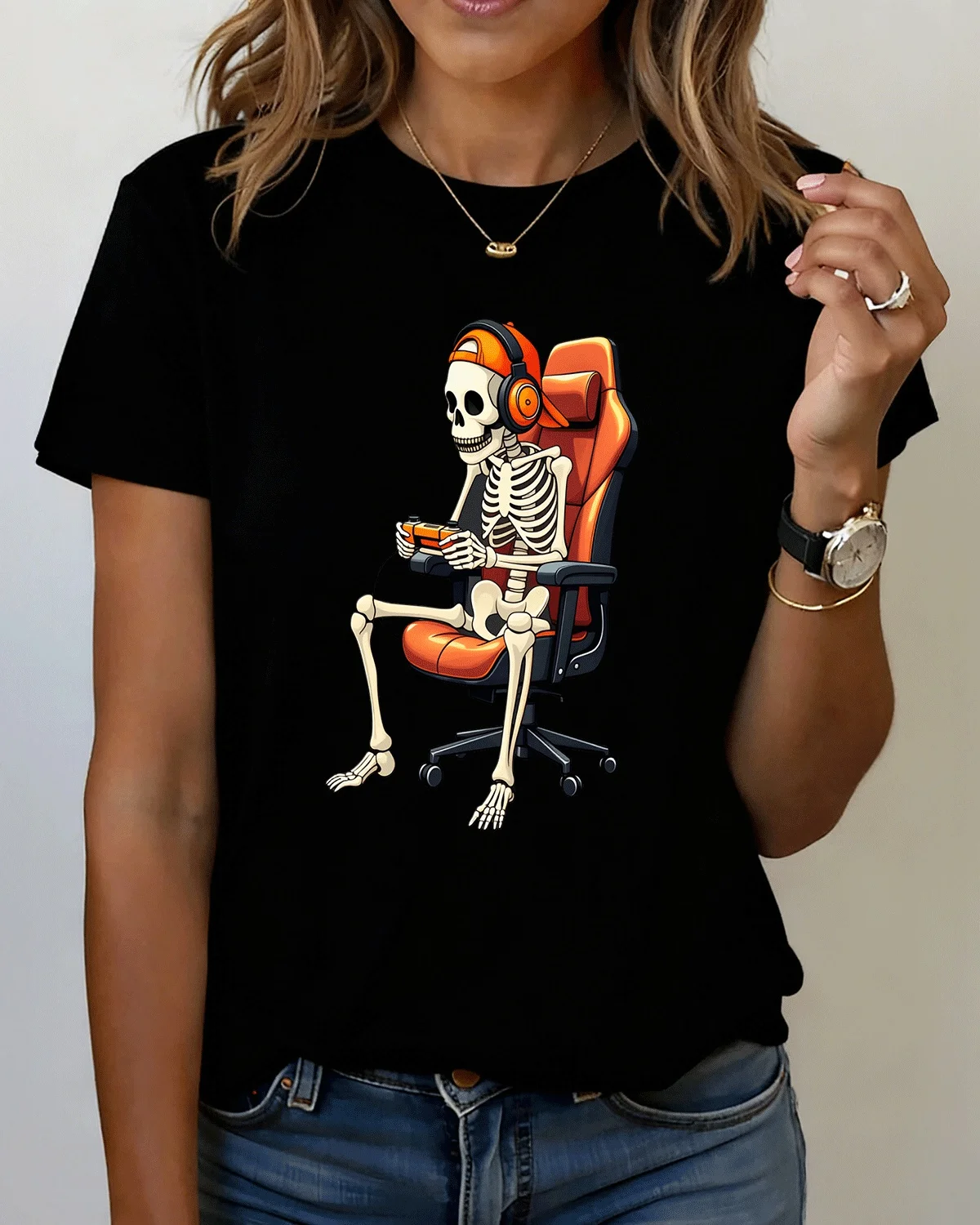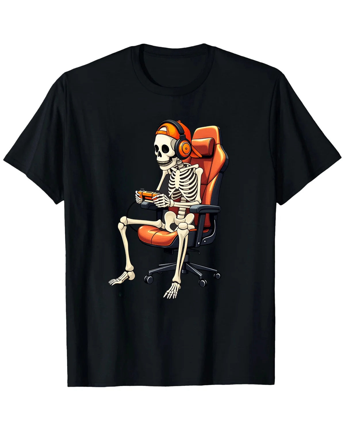 Skeleton Gamer Headphones and Controller Summer Cotton Graphic T Shirt-Casual Retro,Short Sleeve,Soft Fabric,Comfortable Fit