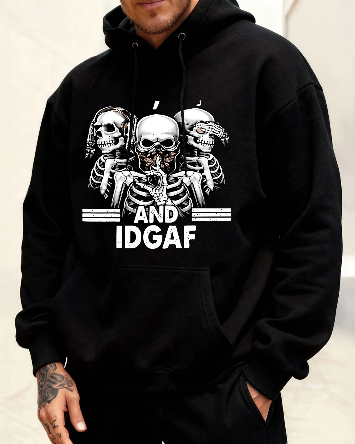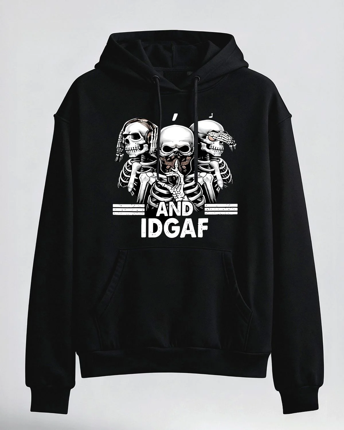 Skeleton Hear See Speak No Evil And IDGAF Cozy Graphic Hoodie for Men and Women - Casual Cool, Long Sleeve, Soft Fabric, Comfortable Fit