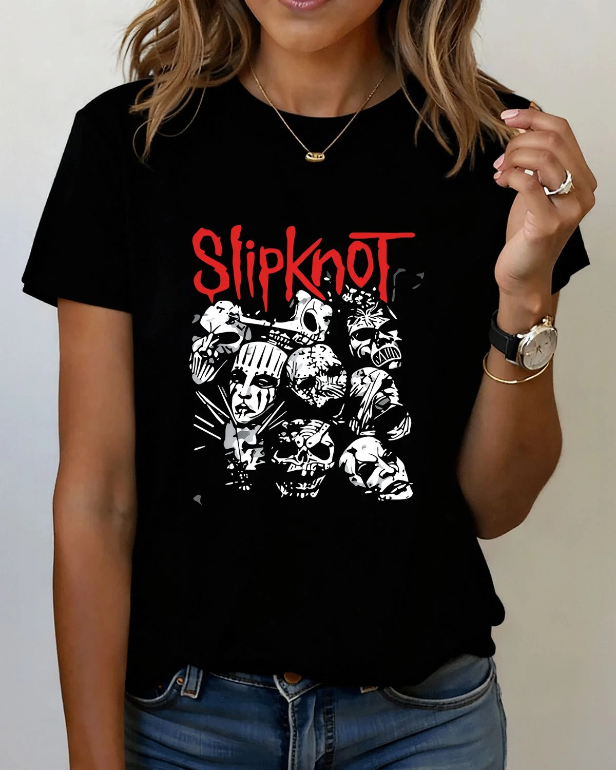 Slipknot Mask Collage Summer Cotton Graphic T Shirt - Vintage Rock,Short Sleeve,Soft Fabric,Comfortable Fit