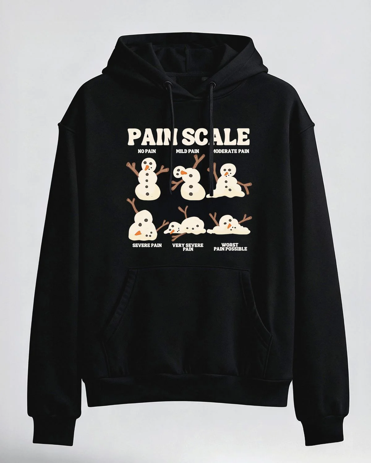 Snowman Pain Scale Winter Humor Cozy Cotton Graphic Hoodie with Pocket-Casual Funny,Long Sleeve,Soft Fabric,Comfortable Fit