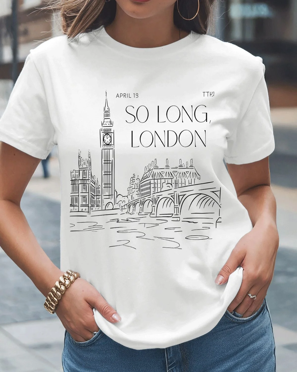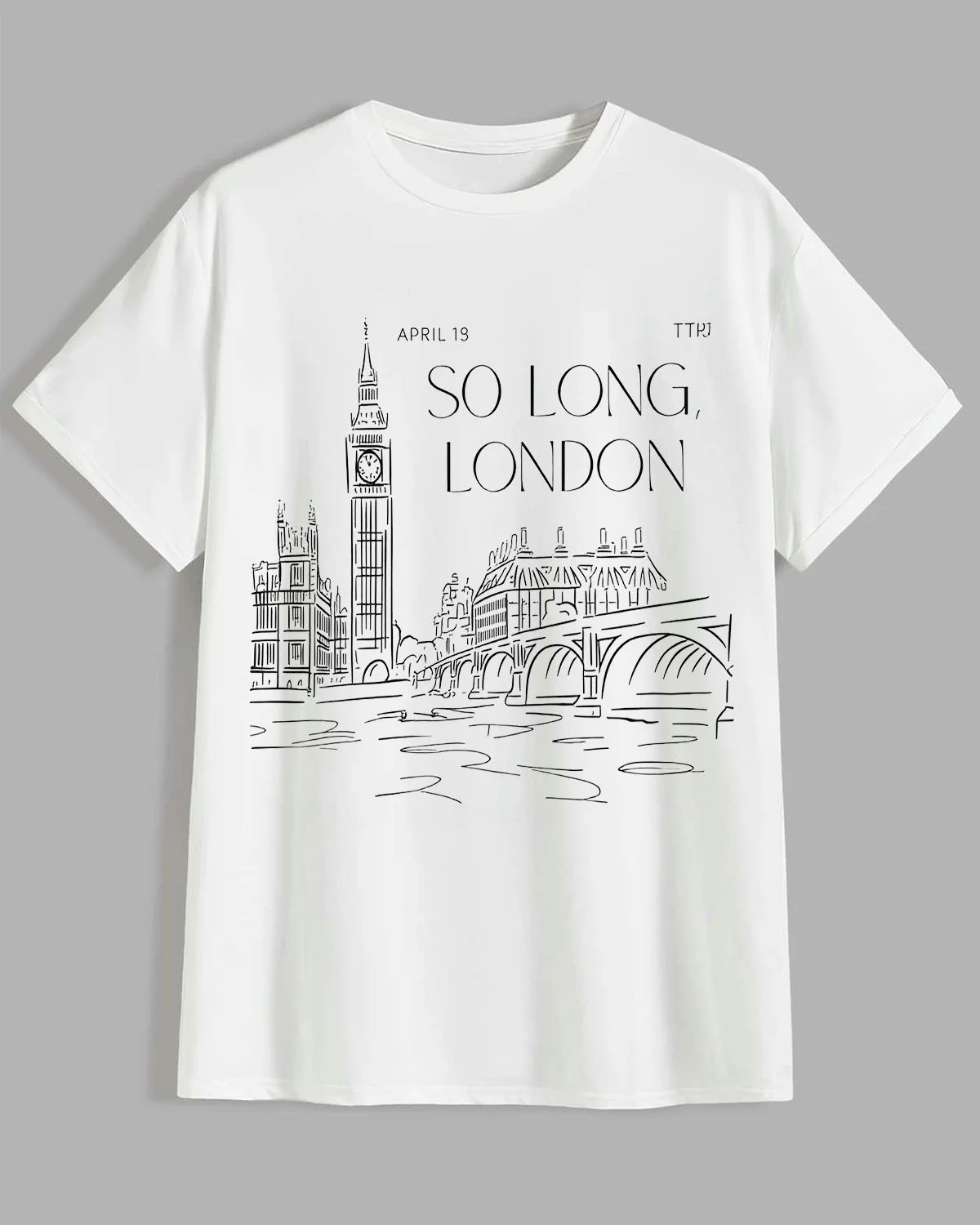 So Long London April 19 Big Ben Skyline Summer Cotton Graphic T Shirt - Vintage Artistic, Short Sleeve, Soft Fabric, Comfortable Fit