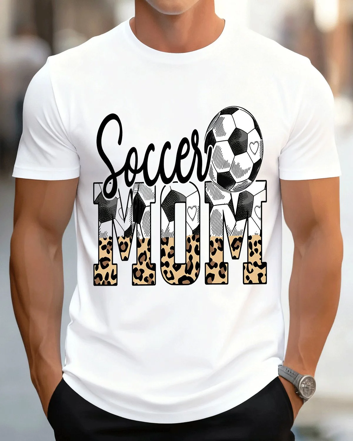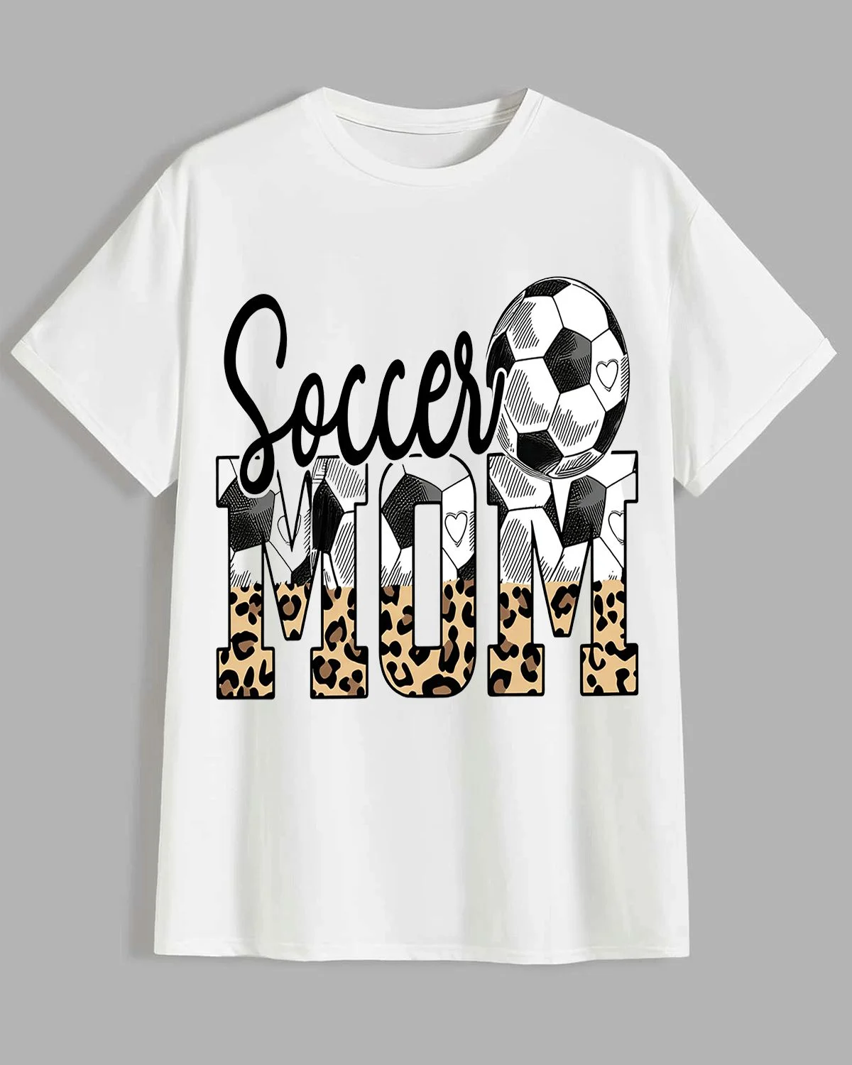 Soccer Mom Leopard Print Summer Cotton Graphic T Shirt - Sporty Trendy, Short Sleeve, Soft Fabric, Comfortable Fit