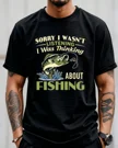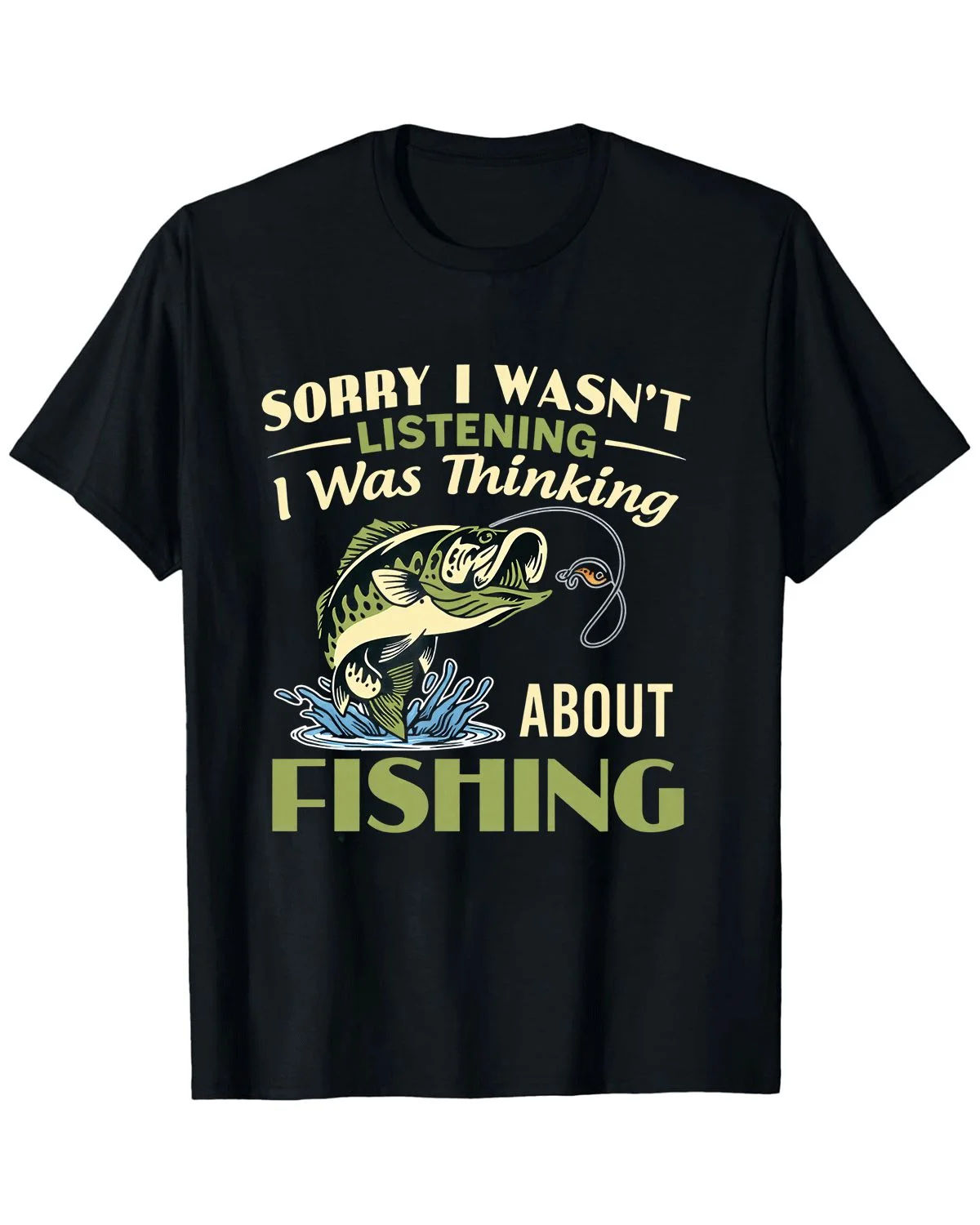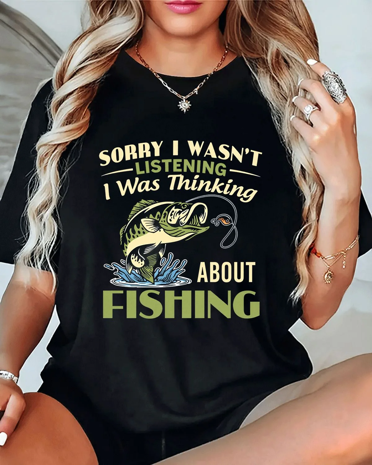 Sorry I Wasn't Listening I Was Thinking About Fishing Summer Cotton Graphic T Shirt - Casual Funny,Short Sleeve,Soft Fabric,Comfortable Fit