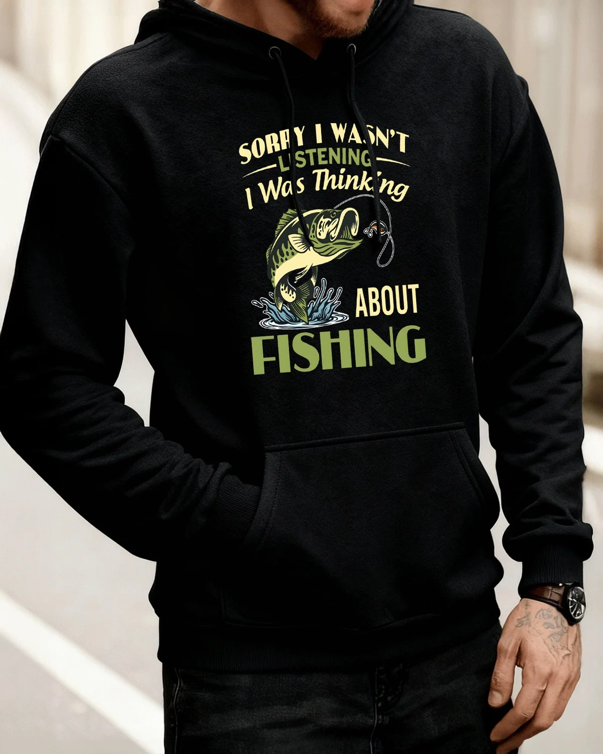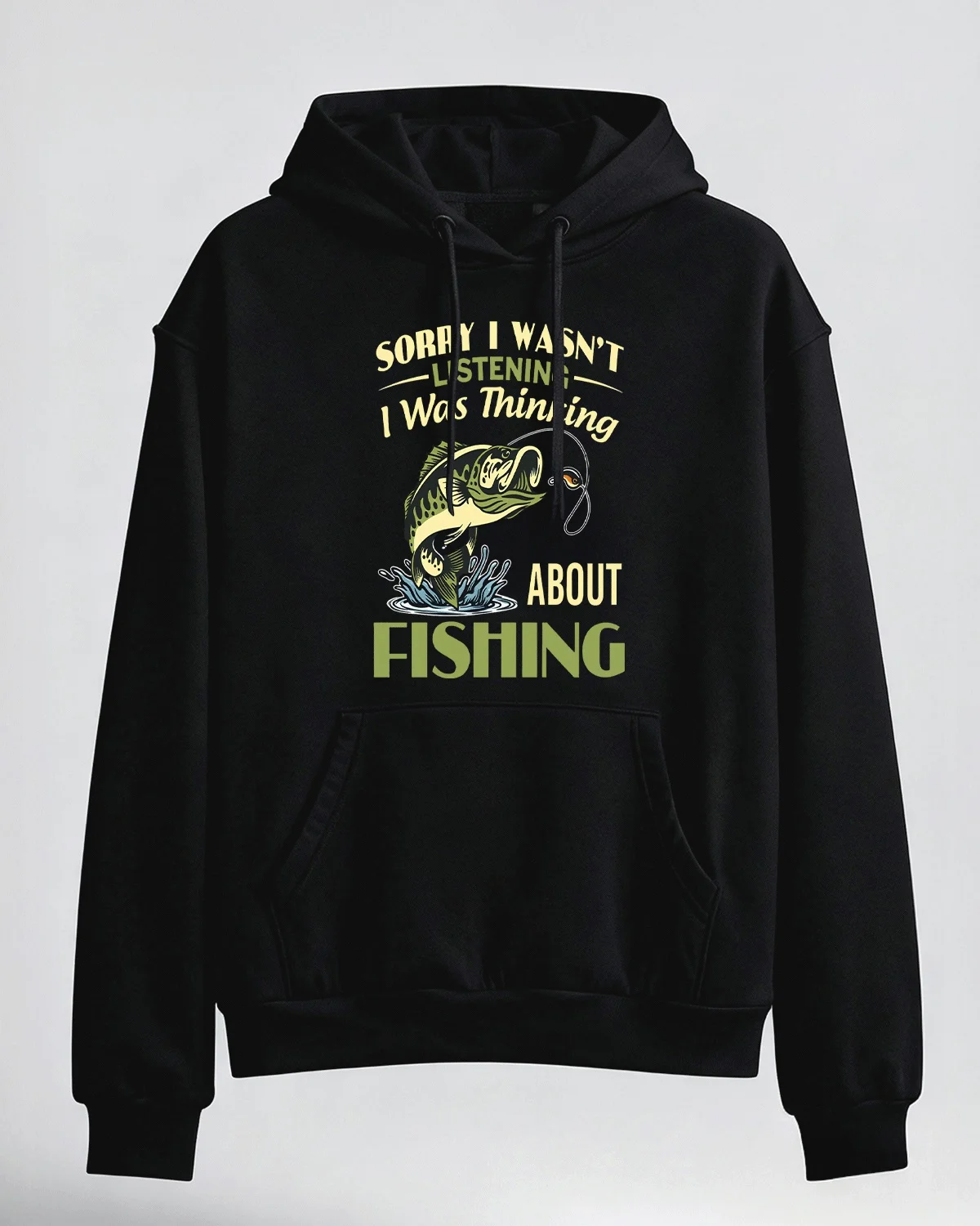 Sorry I Wasn't Listening Thinking About Fishing Cozy Cotton Graphic Hoodie-Casual Vintage,Long Sleeves,Soft Fabric,Comfortable Fit