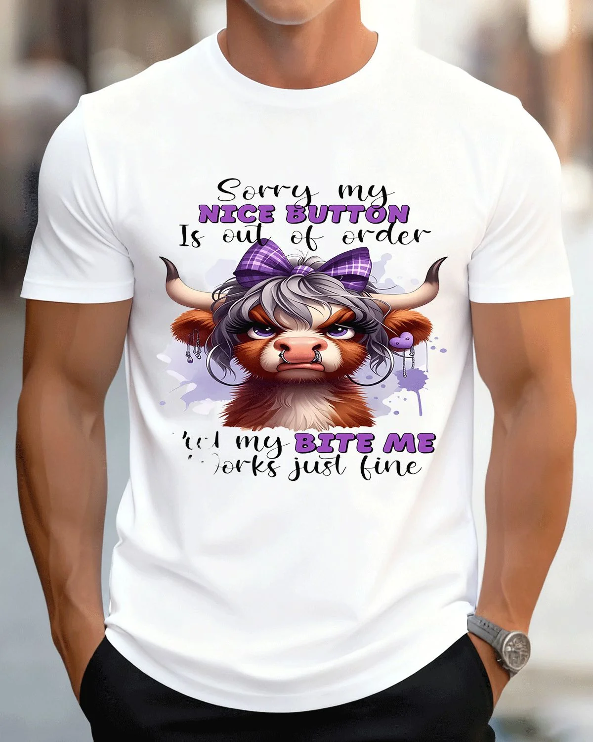 Sorry My Nice Button Is Out of Order Bite Me Summer Cotton Graphic T Shirt - Casual Funny,Short Sleeve,Soft Fabric,Comfortable Fit