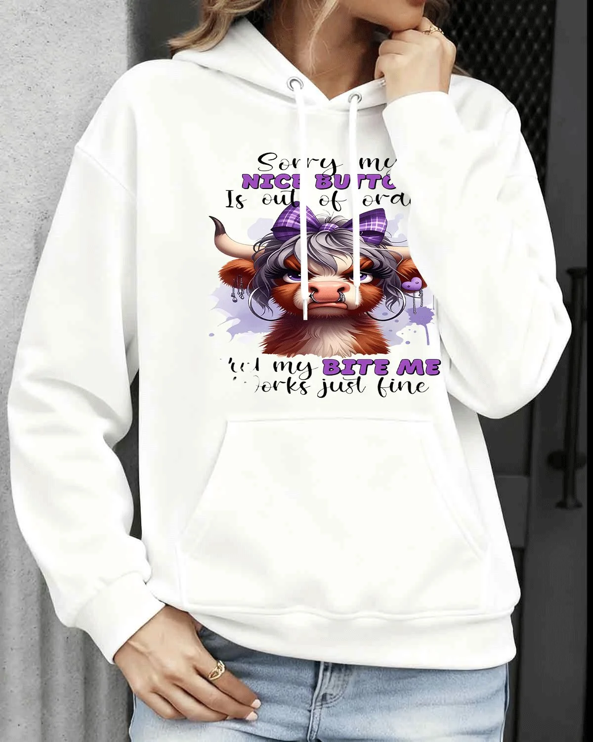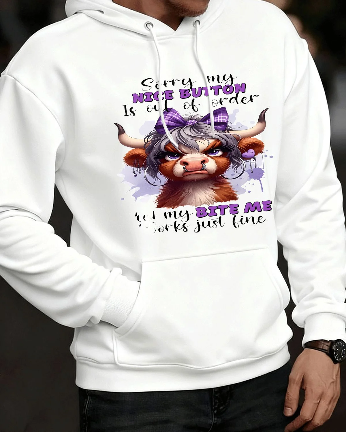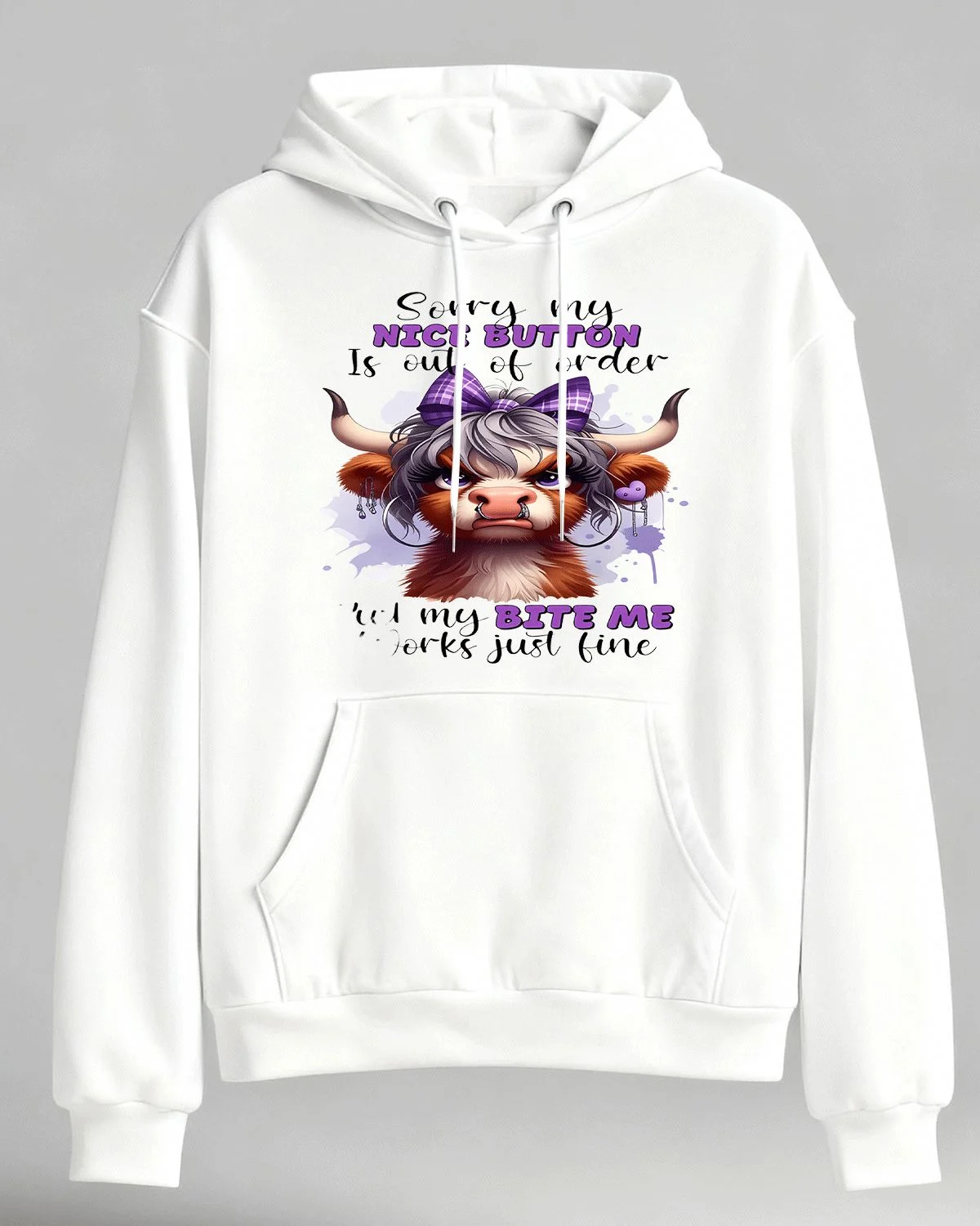 Sorry My Nice Button Is Out of Order Bite Me Summer Cozy Graphic Hoodie - Casual Funny, Long Sleeve, Soft Fabric, Comfortable Fit