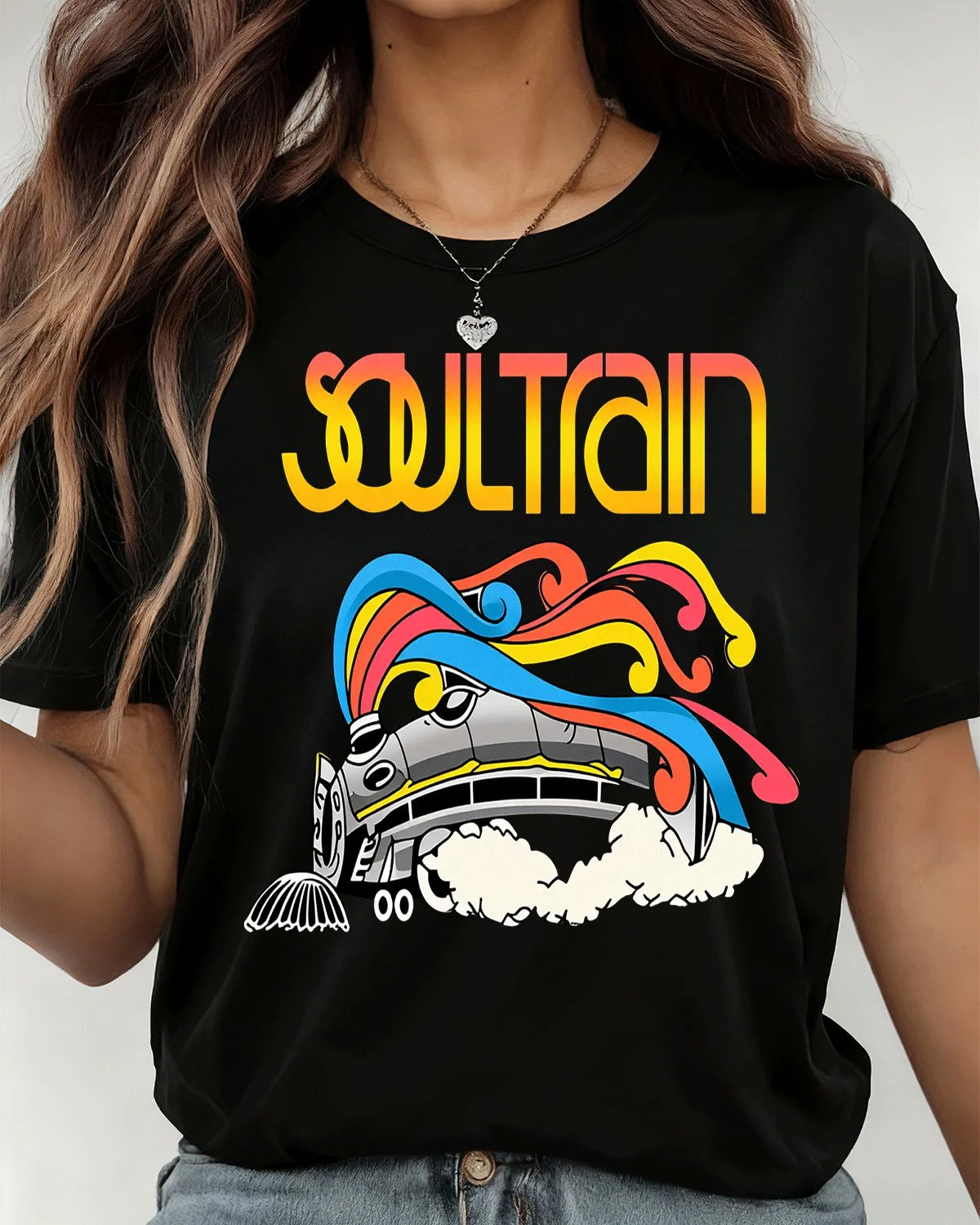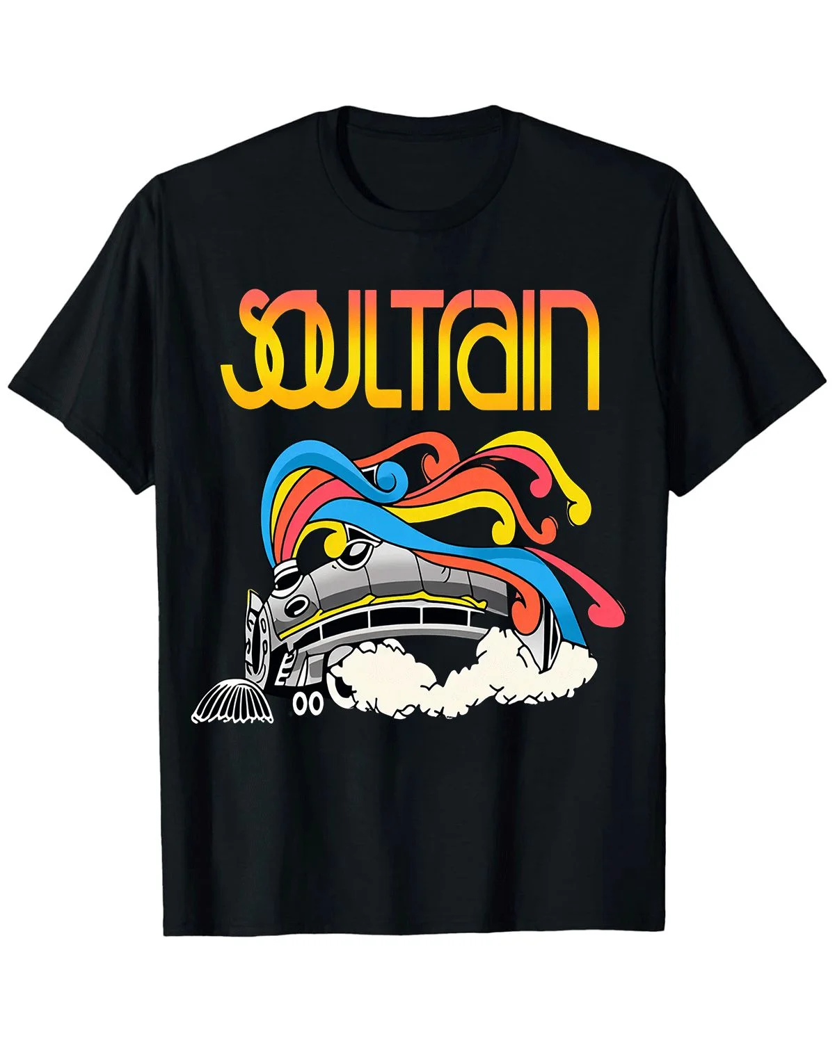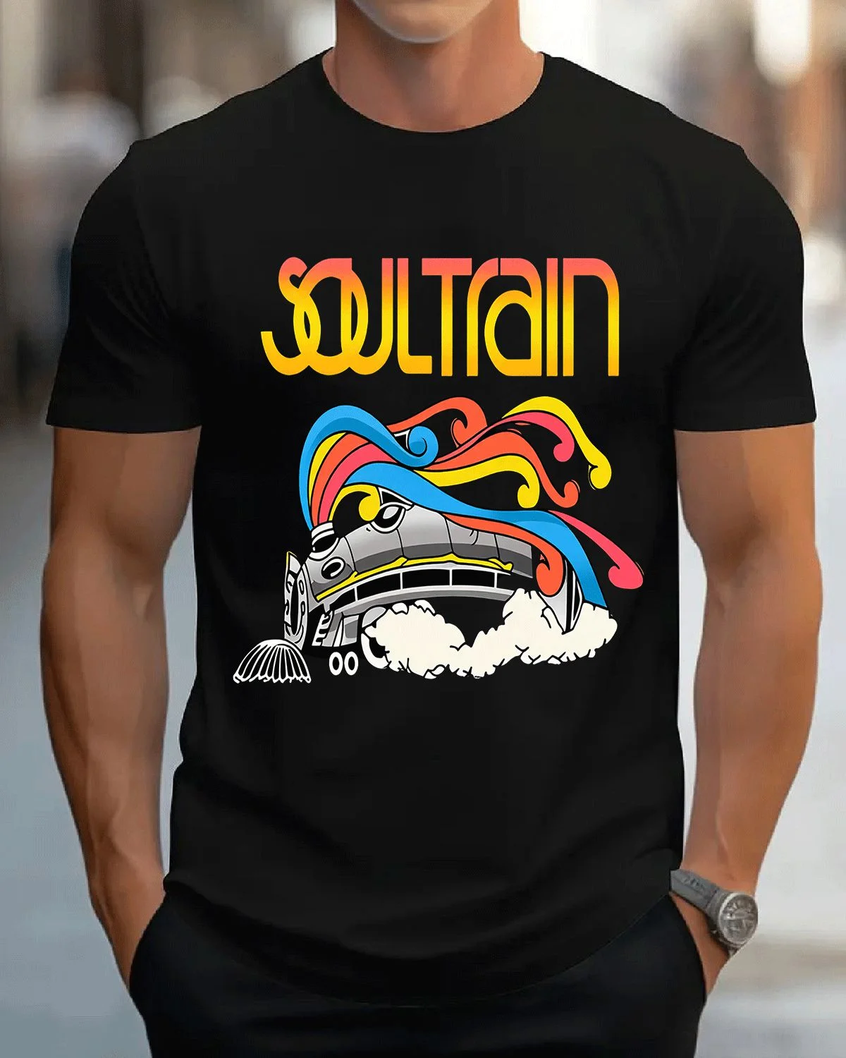 Soul Train Retro Colorful Locomotive Summer Cotton Graphic T Shirt - Vintage Artistic, Short Sleeve, Soft Fabric, Comfortable Fit