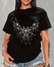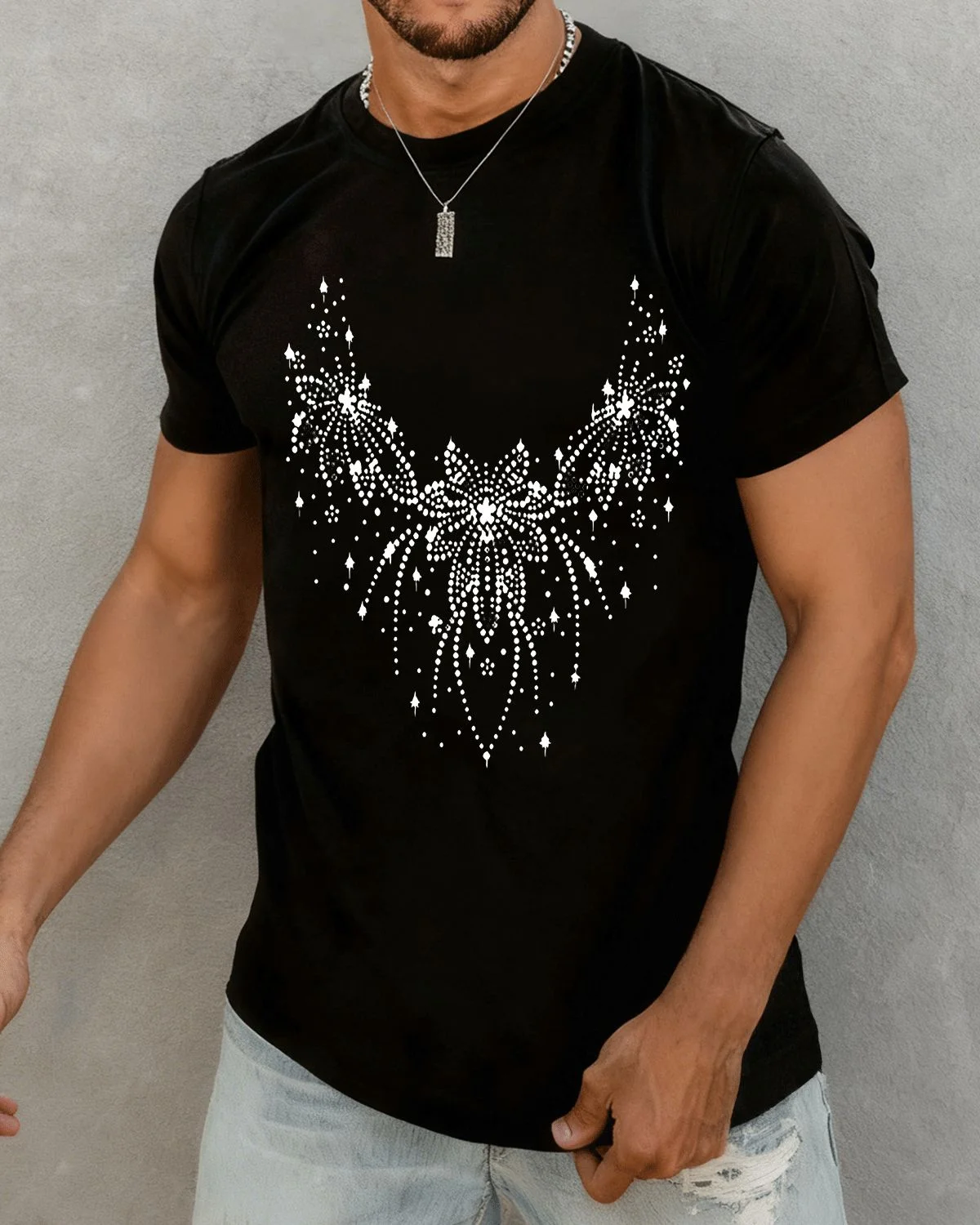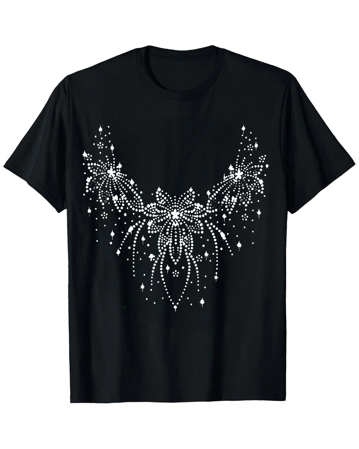 Sparkling Floral Firework Necklace Summer Cotton Graphic T Shirt-Chic Artistic,Short Sleeve,Soft Fabric,Comfortable Fit