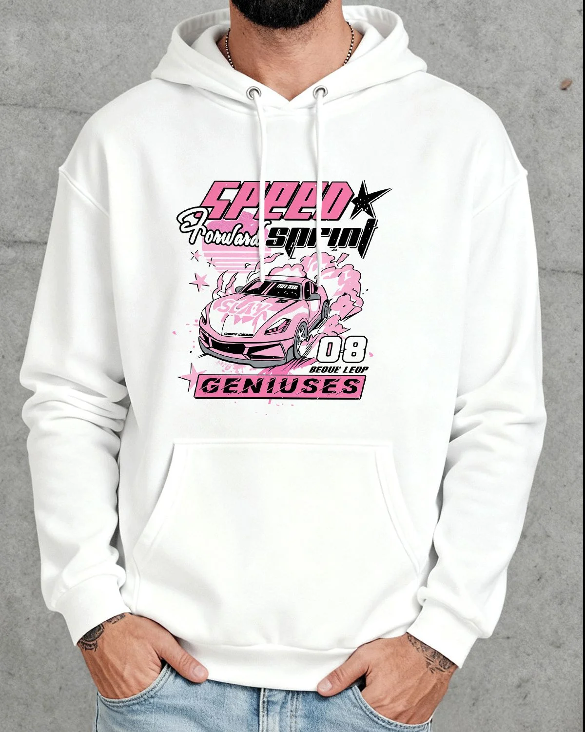 Speed Geniuses Racing Car Cozy Cotton Graphic Hoodie with Pocket-Sporty Retro,Long Sleeve,Soft Fabric,Comfortable Fit