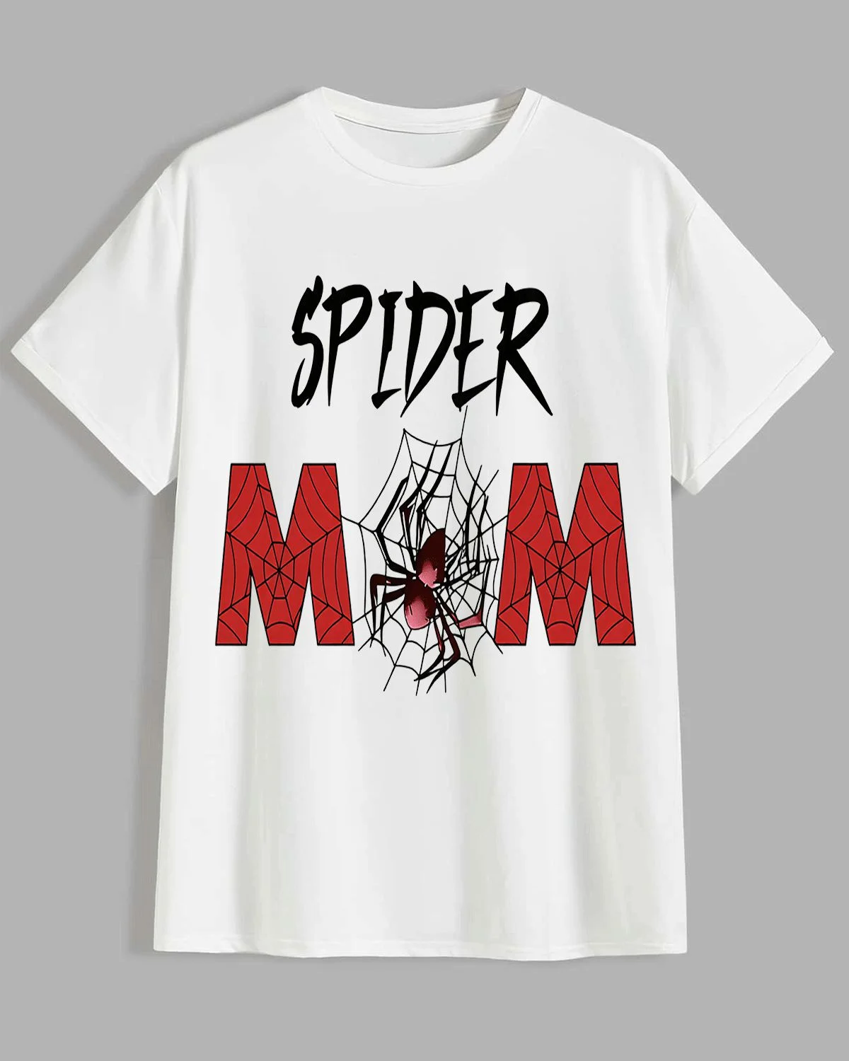 Spider Mom Summer Cotton Graphic T Shirt - Cool Graphic, Short Sleeve, Soft Fabric, Comfortable Fit