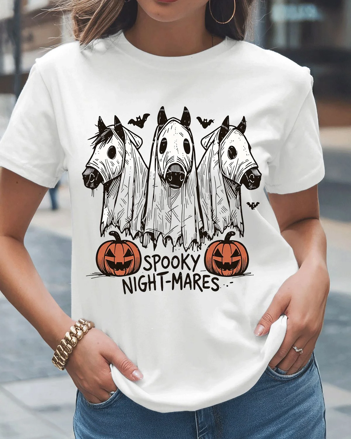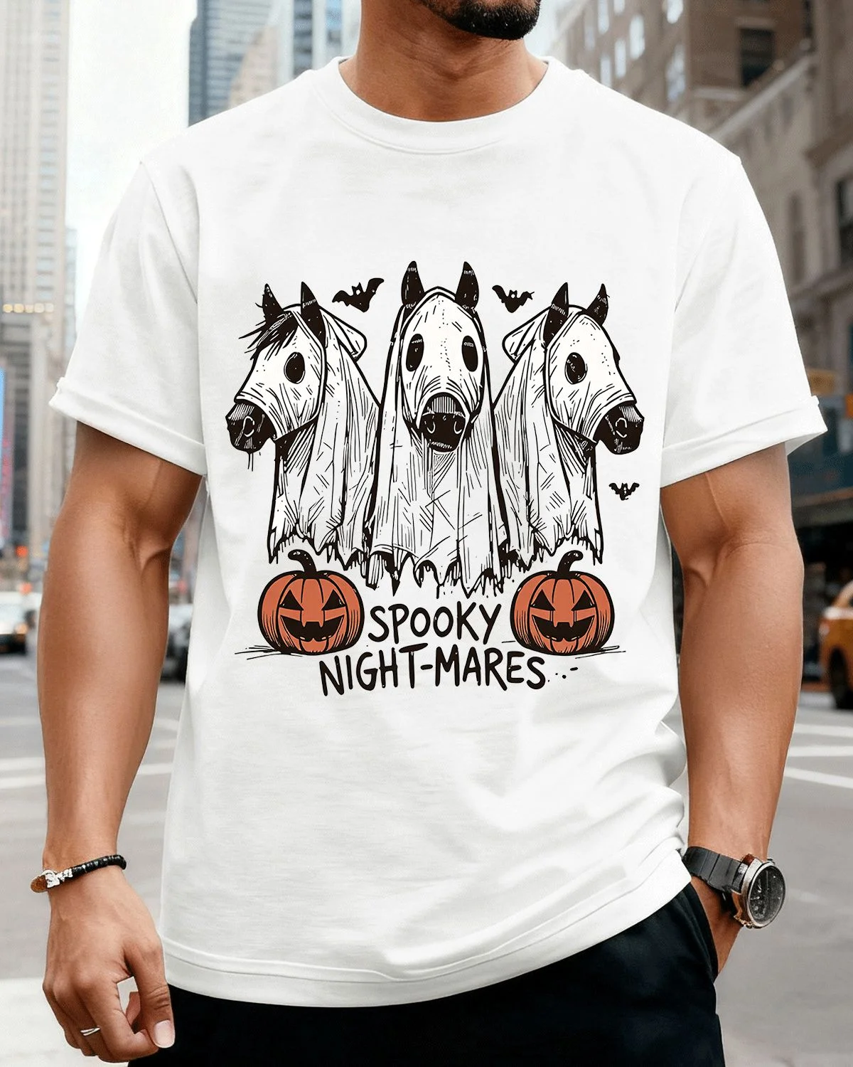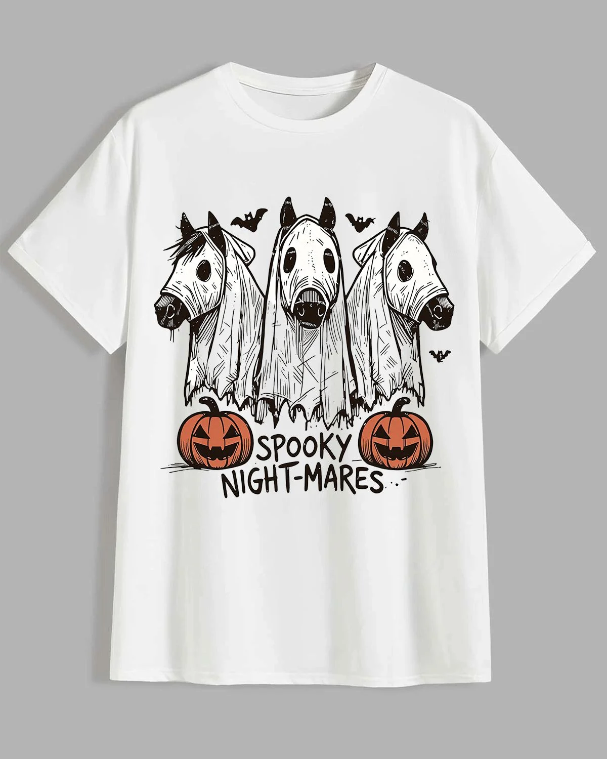 Spooky Night Mares Halloween Summer Cotton Graphic T Shirt - Vintage Retro,Short Sleeve,Soft Fabric,Comfortable Fit