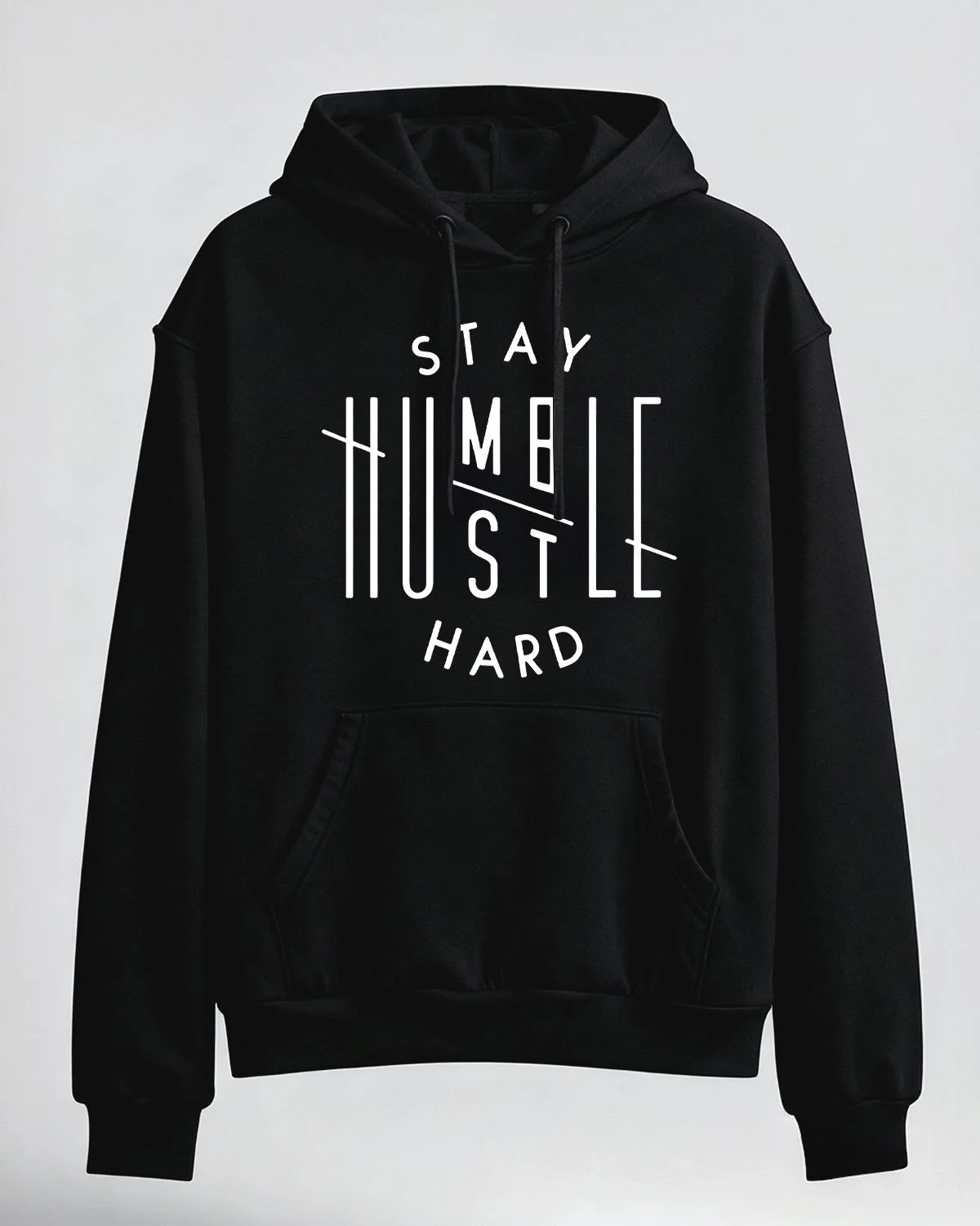 Stay Humble Hustle Hard Cozy Graphic Hoodie for Men and Women - Casual Urban, Long Sleeve, Soft Fabric, Comfortable Fit