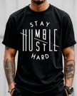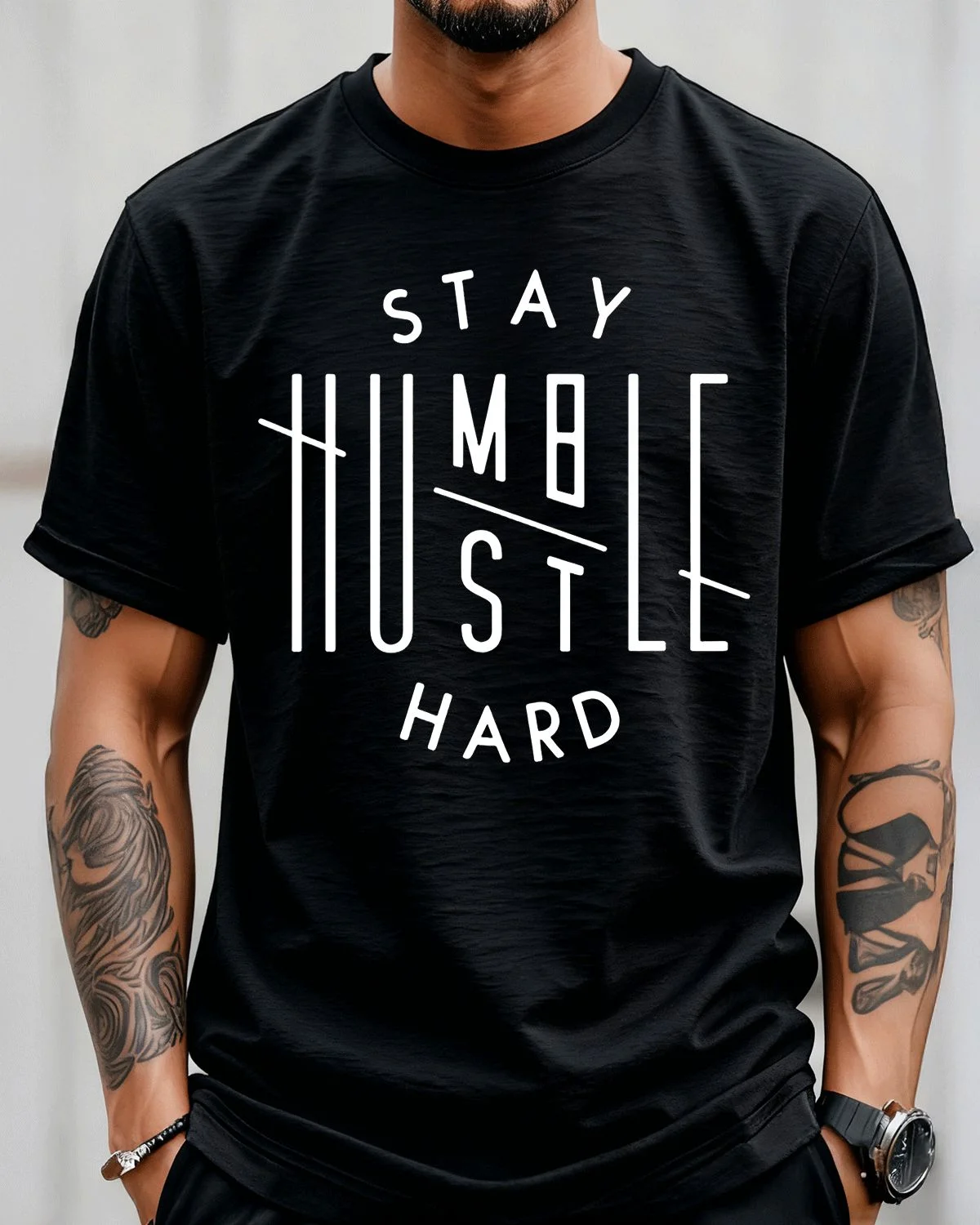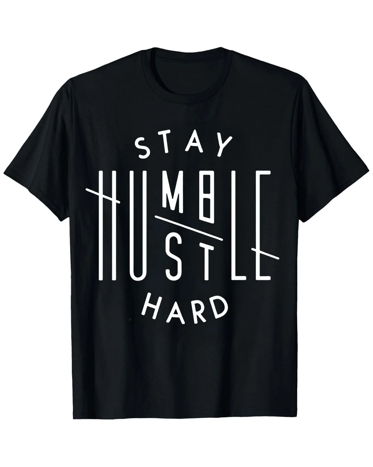 Stay Humble Hustle Hard Summer Cotton Graphic T Shirt - Casual Urban, Short Sleeve, Soft Fabric, Comfortable Fit