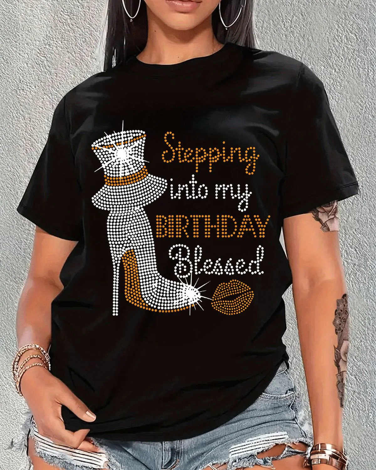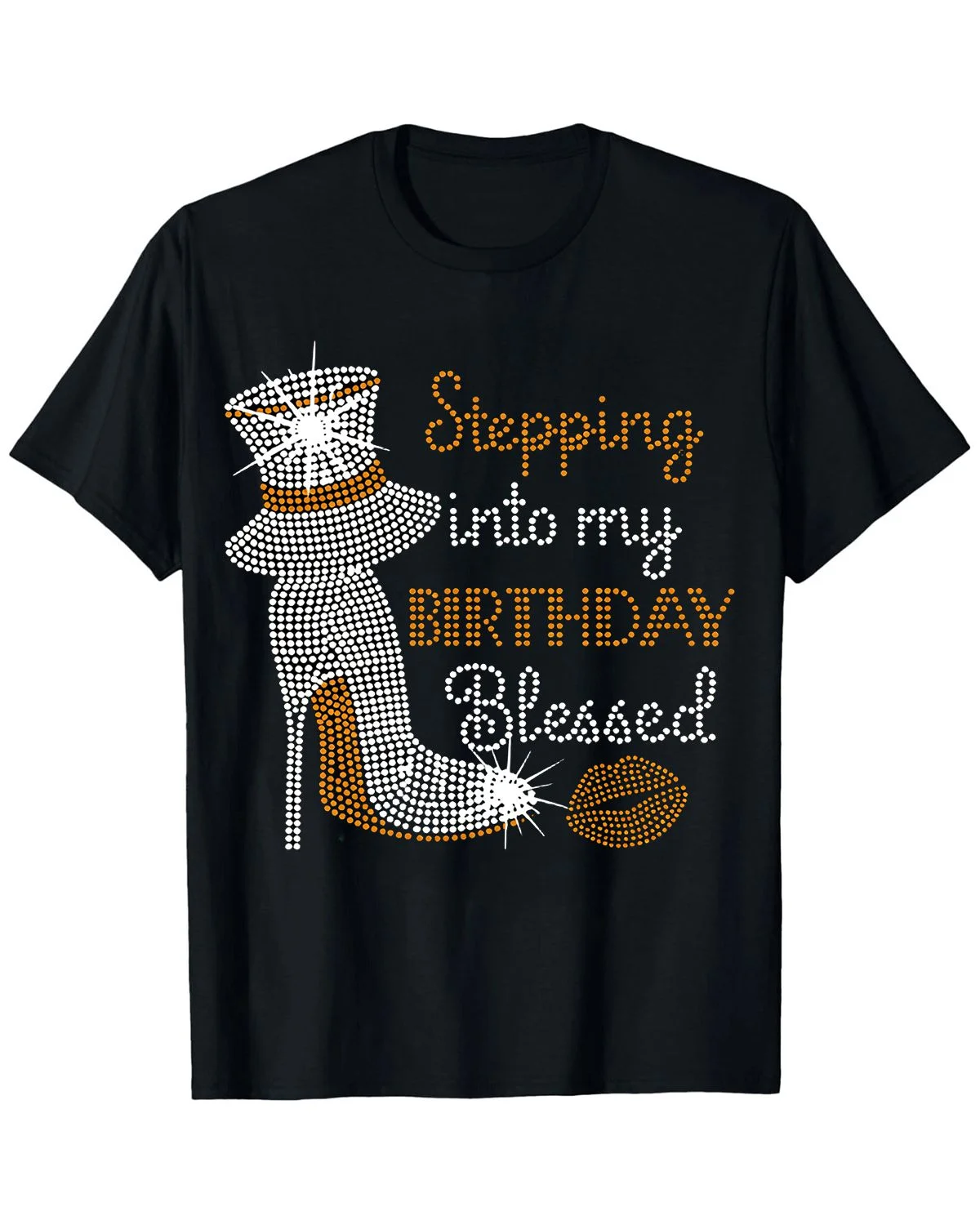 Stepping Into My Birthday Blessed High Heel Summer Cotton Graphic T Shirt - Chic Artistic, Short Sleeve, Soft Fabric, Comfortable Fit