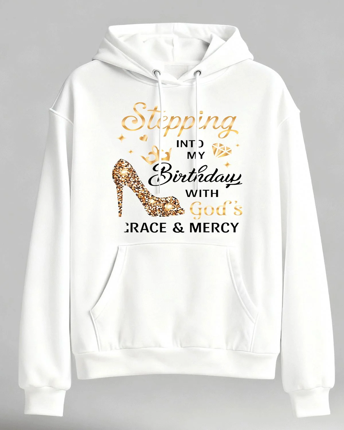 Stepping Into My Birthday with God's Grace and Mercy Cozy Graphic Hoodie for Men and Women - Chic Artistic, Long Sleeve, Soft Fabric, Comfortable Fit