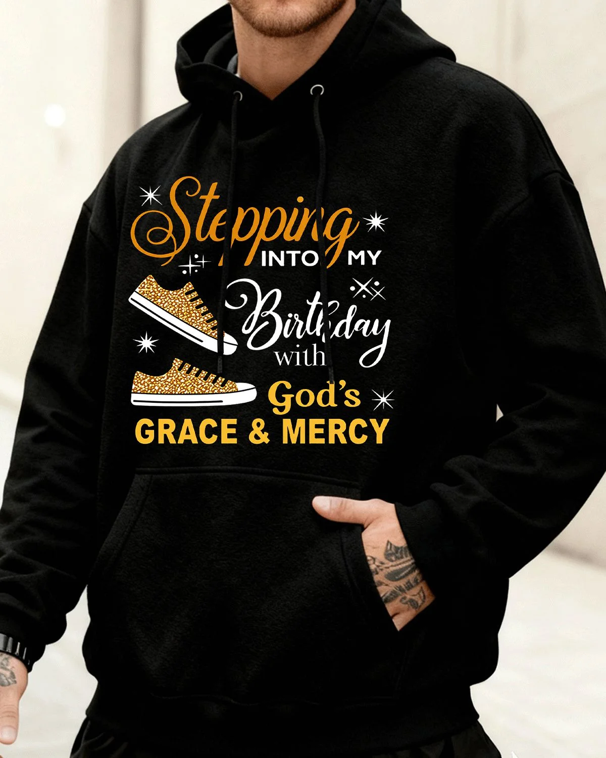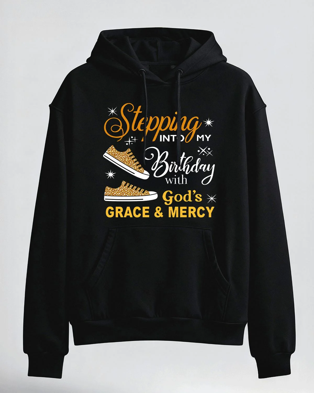 Stepping Into My Birthday with God's Grace and Mercy Shoes Cozy Graphic Hoodie for Men and Women - Casual Artistic, Long Sleeve, Soft Fabric, Comfortable Fit