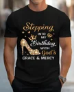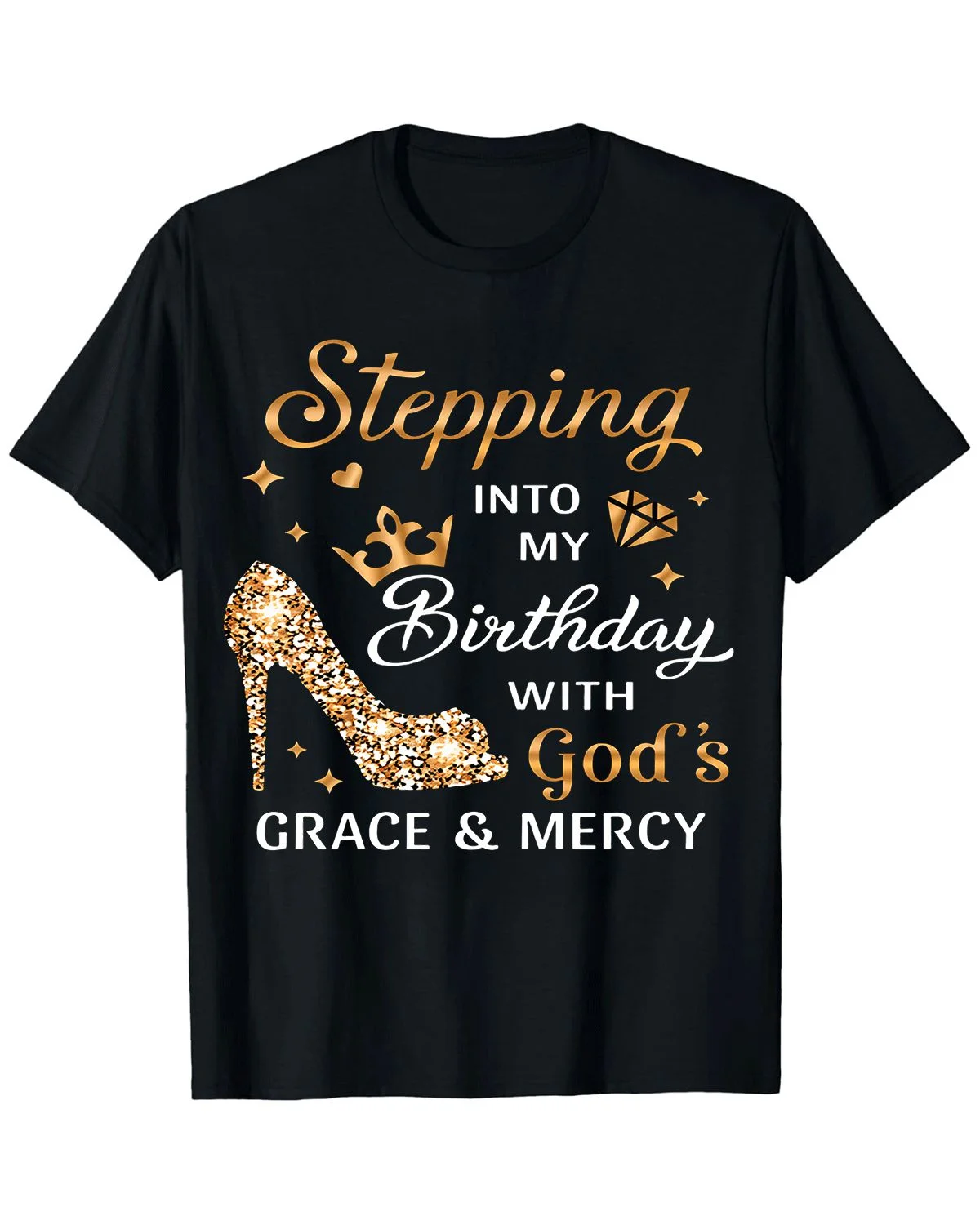 Stepping Into My Birthday With God's Grace and Mercy Summer Cotton Graphic T Shirt - Chic Artistic, Short Sleeve, Soft Fabric, Comfortable Fit