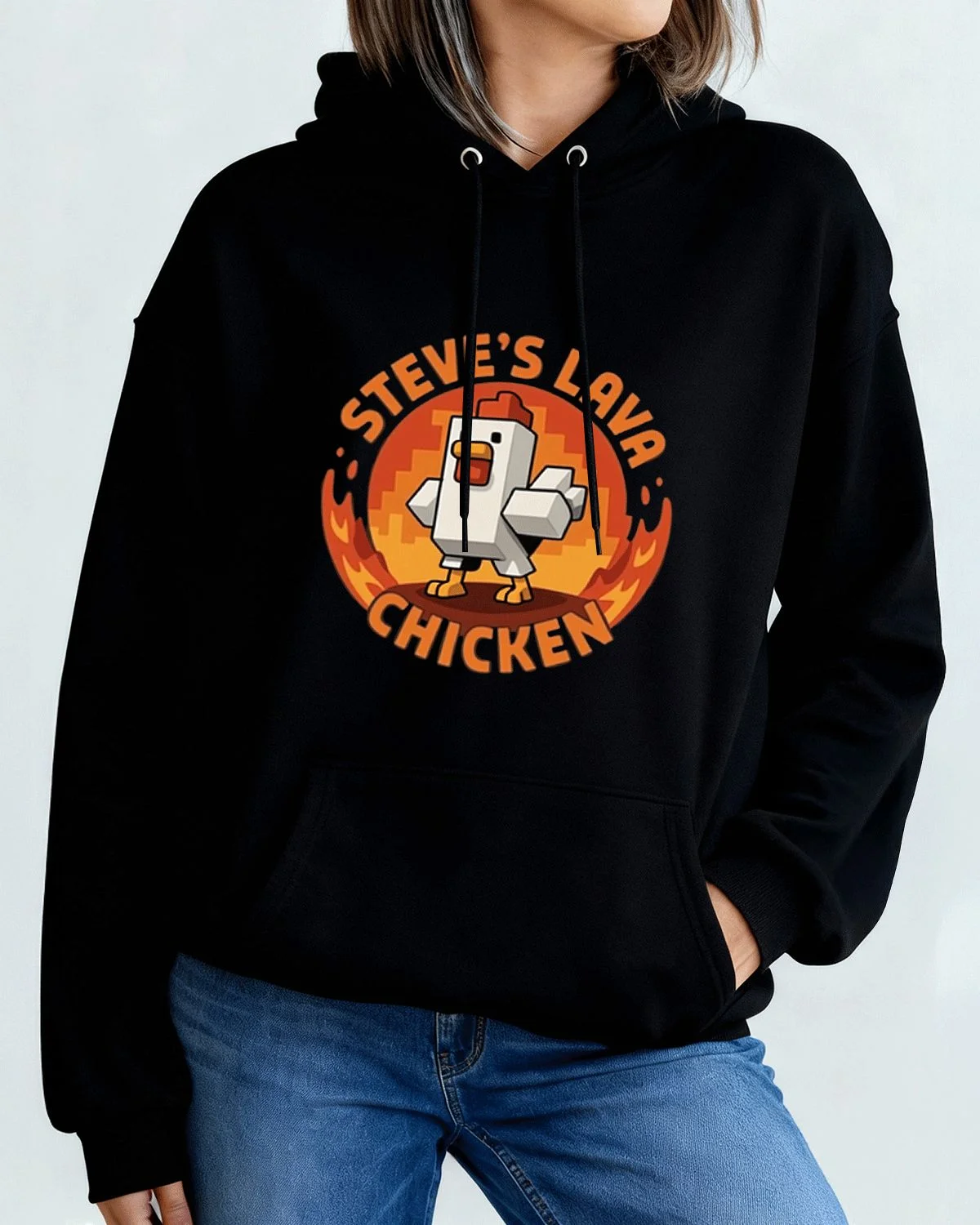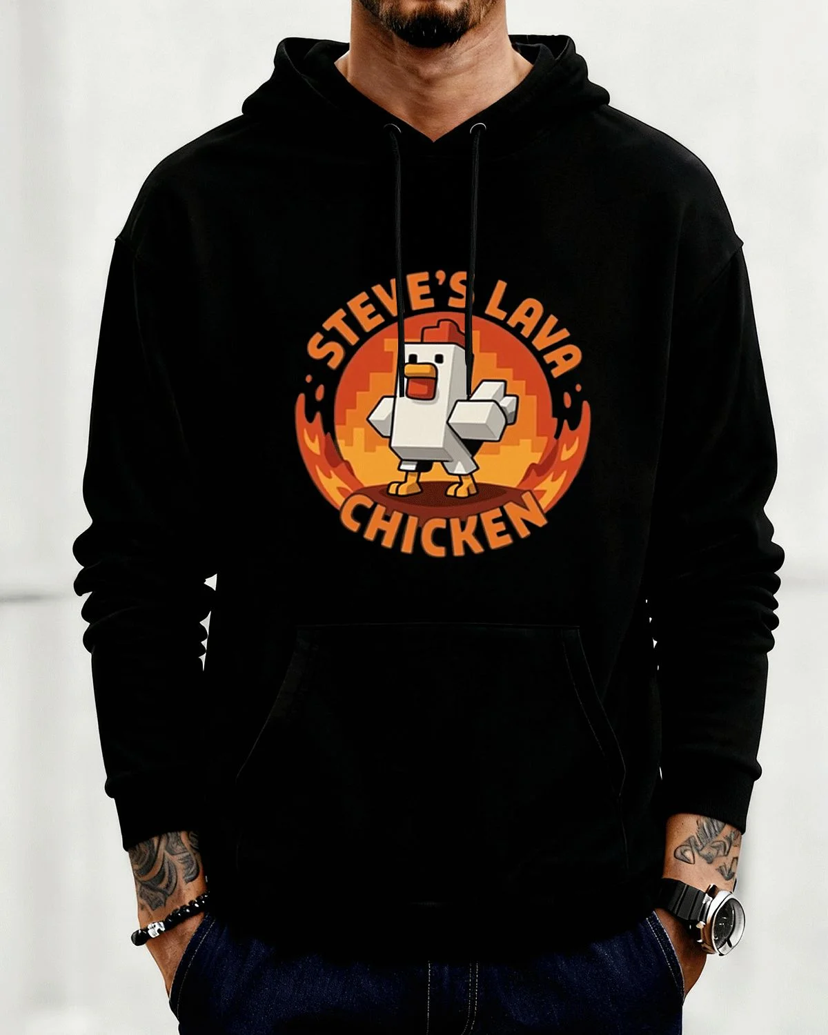 Steve's Lava Chicken Cozy Cotton Graphic Hoodie with Pocket-Funny Retro,Long Sleeve,Soft Fabric,Comfortable Fit