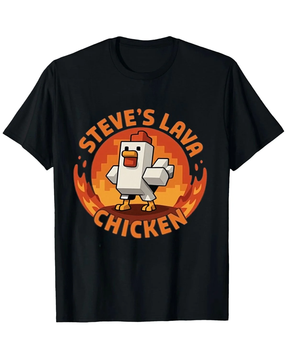 Steve's Lava Chicken Summer Cotton Graphic T Shirt - Funny Retro,Short Sleeve,Soft Fabric,Comfortable Fit