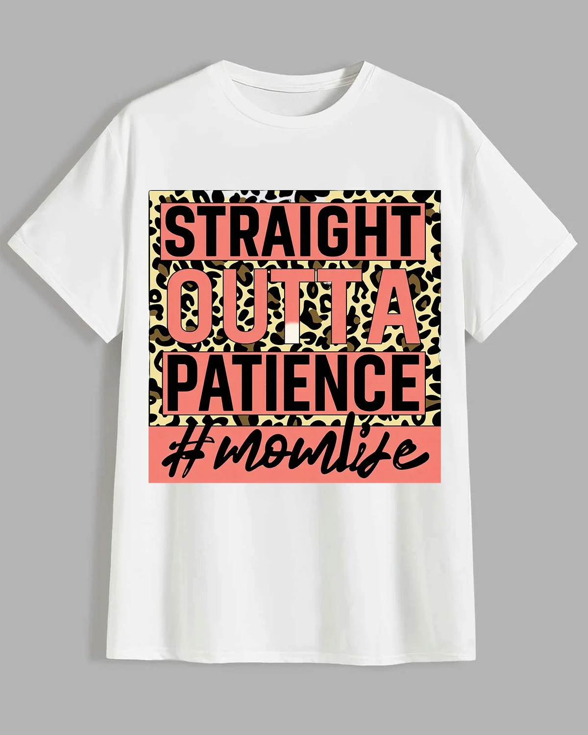 Straight Outta Patience Mom Life Summer Cotton Graphic T Shirt - Casual Funny, Short Sleeve, Soft Fabric, Comfortable Fit