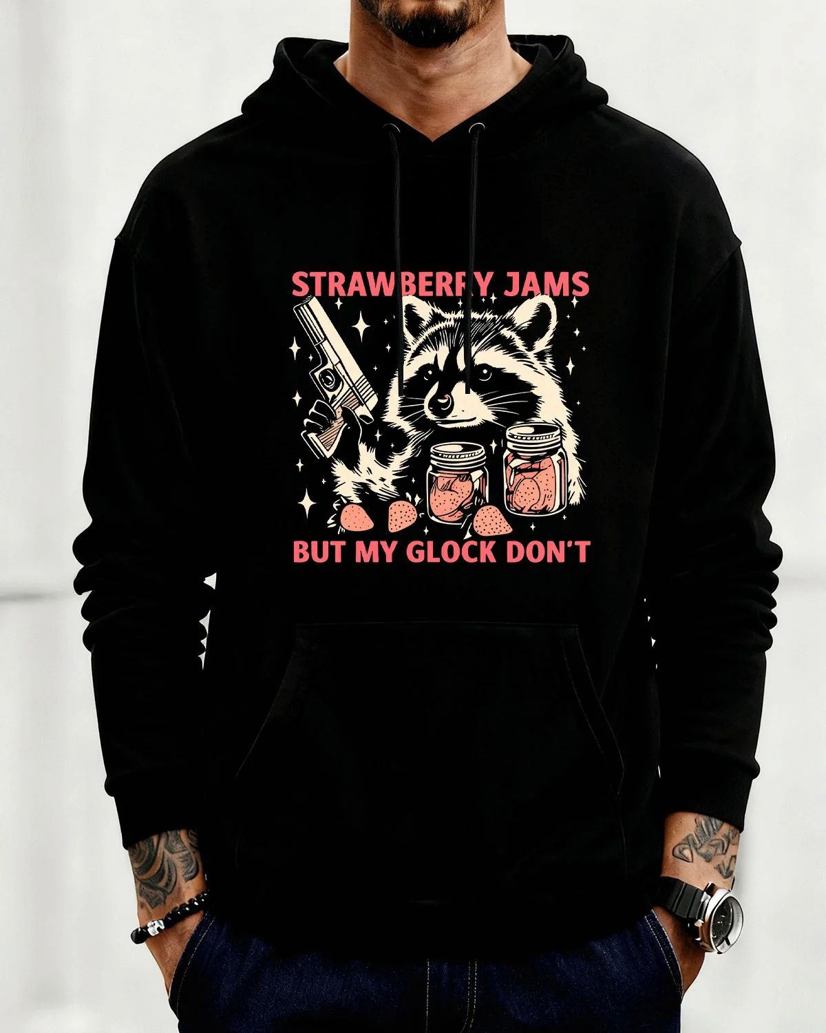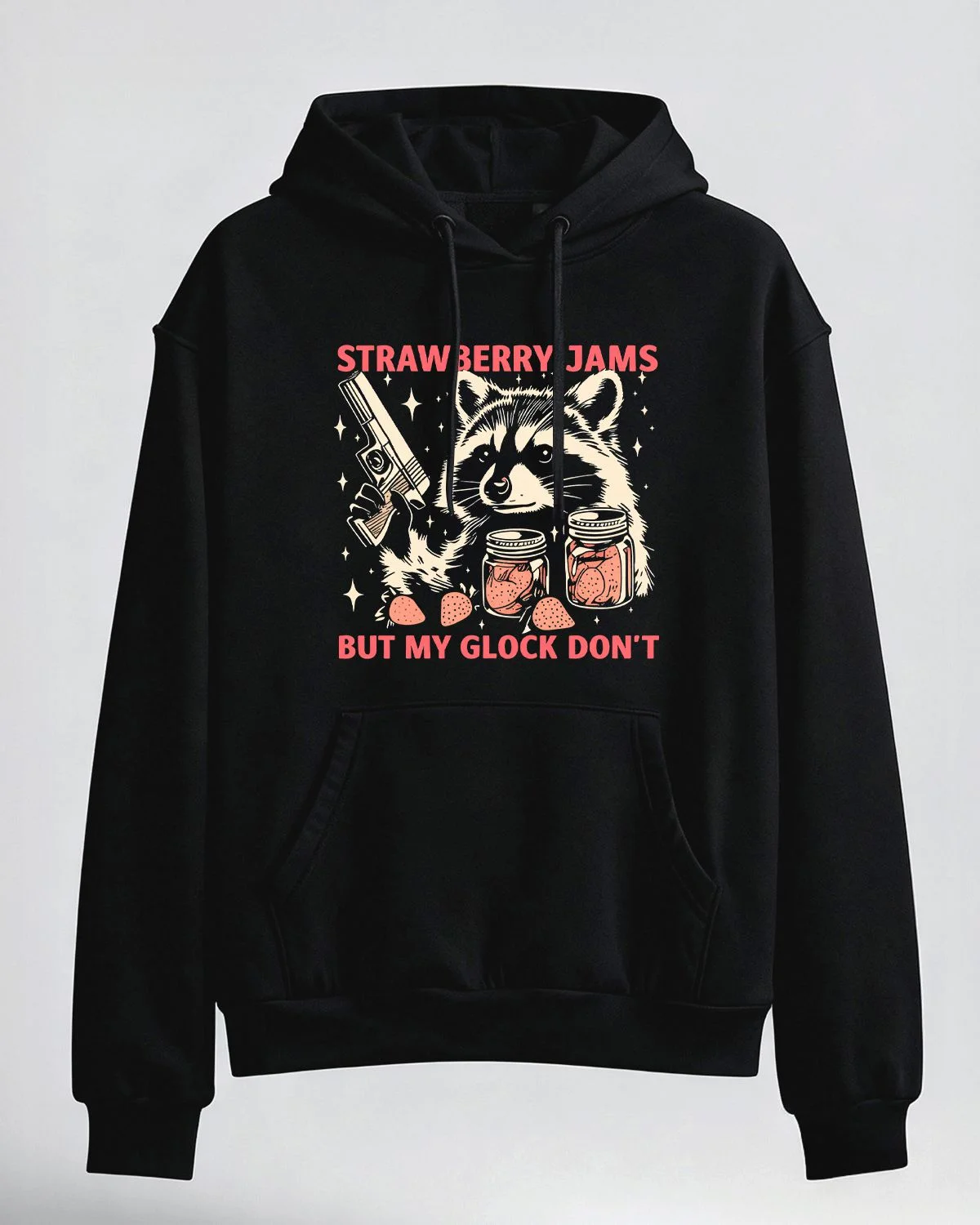 Strawberry Jams Raccoon Cozy Cotton Graphic Hoodie with Pocket-Casual Funny,Long Sleeve,Soft Fabric,Comfortable Fit
