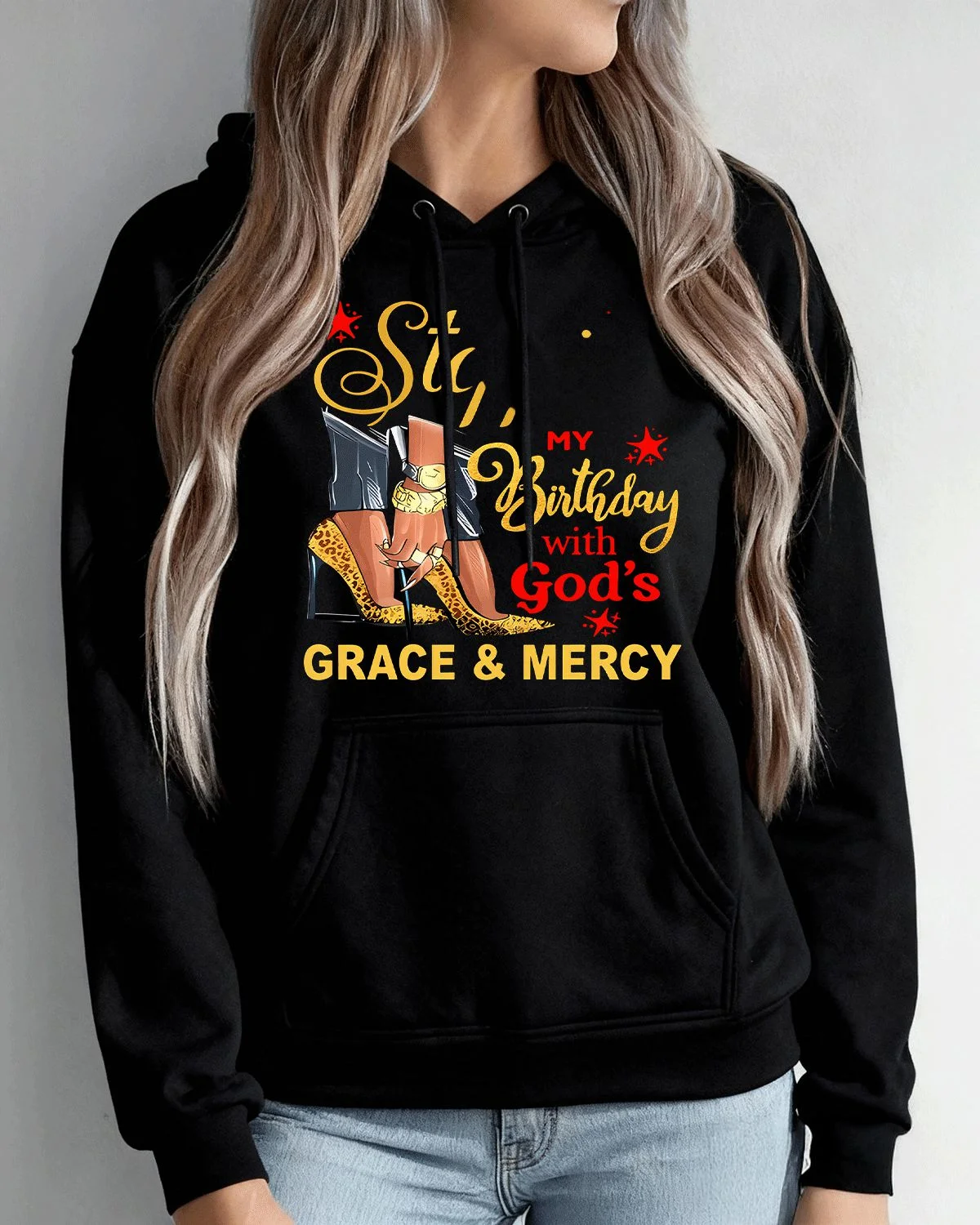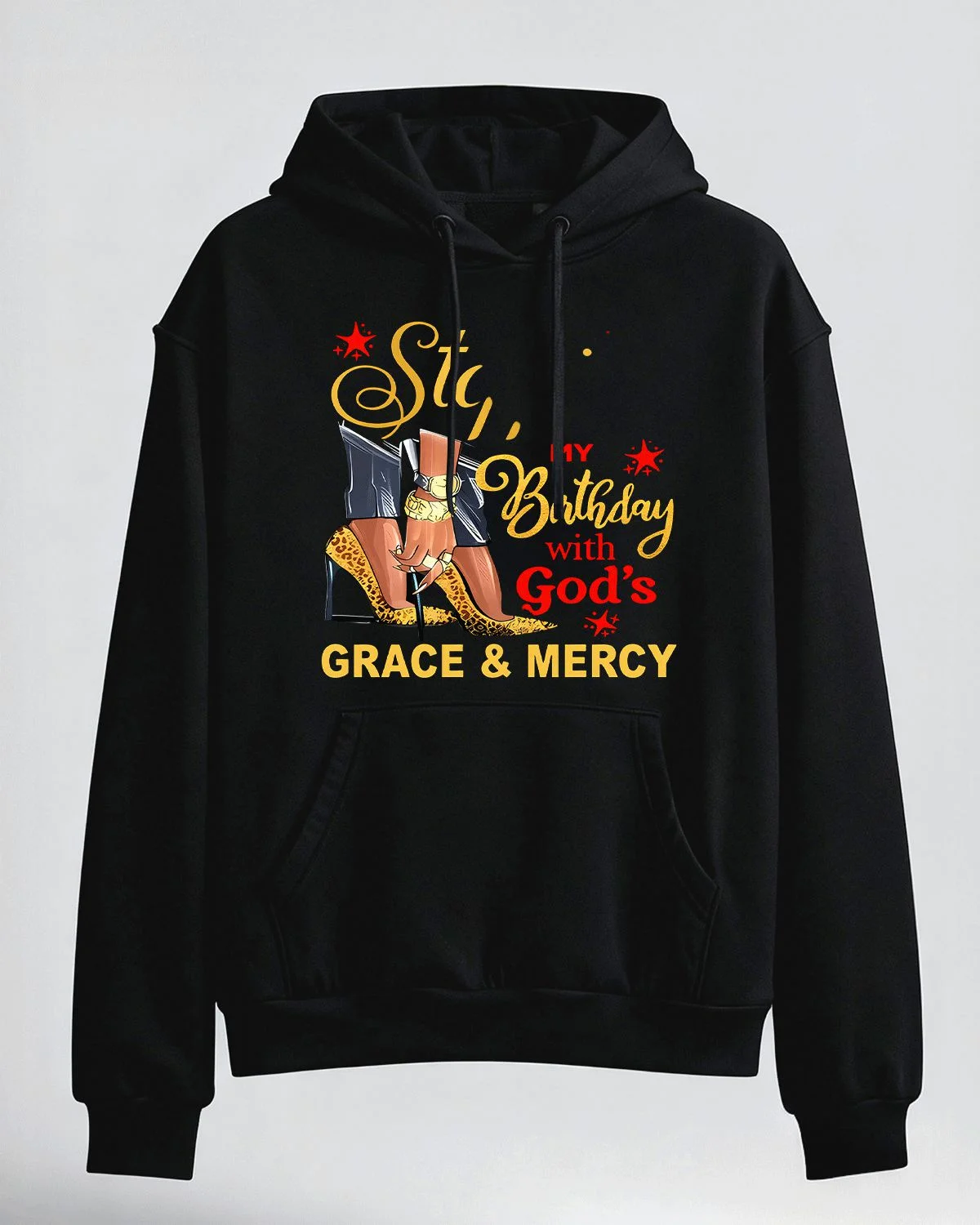 Stylish Mom Birthday with God's Grace & Mercy Cozy Graphic Hoodie for Men and Women - Casual Chic, Long Sleeve, Soft Fabric, Comfortable Fit