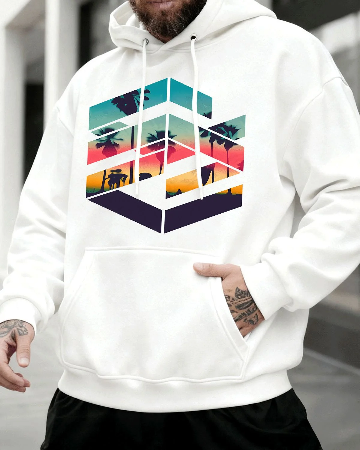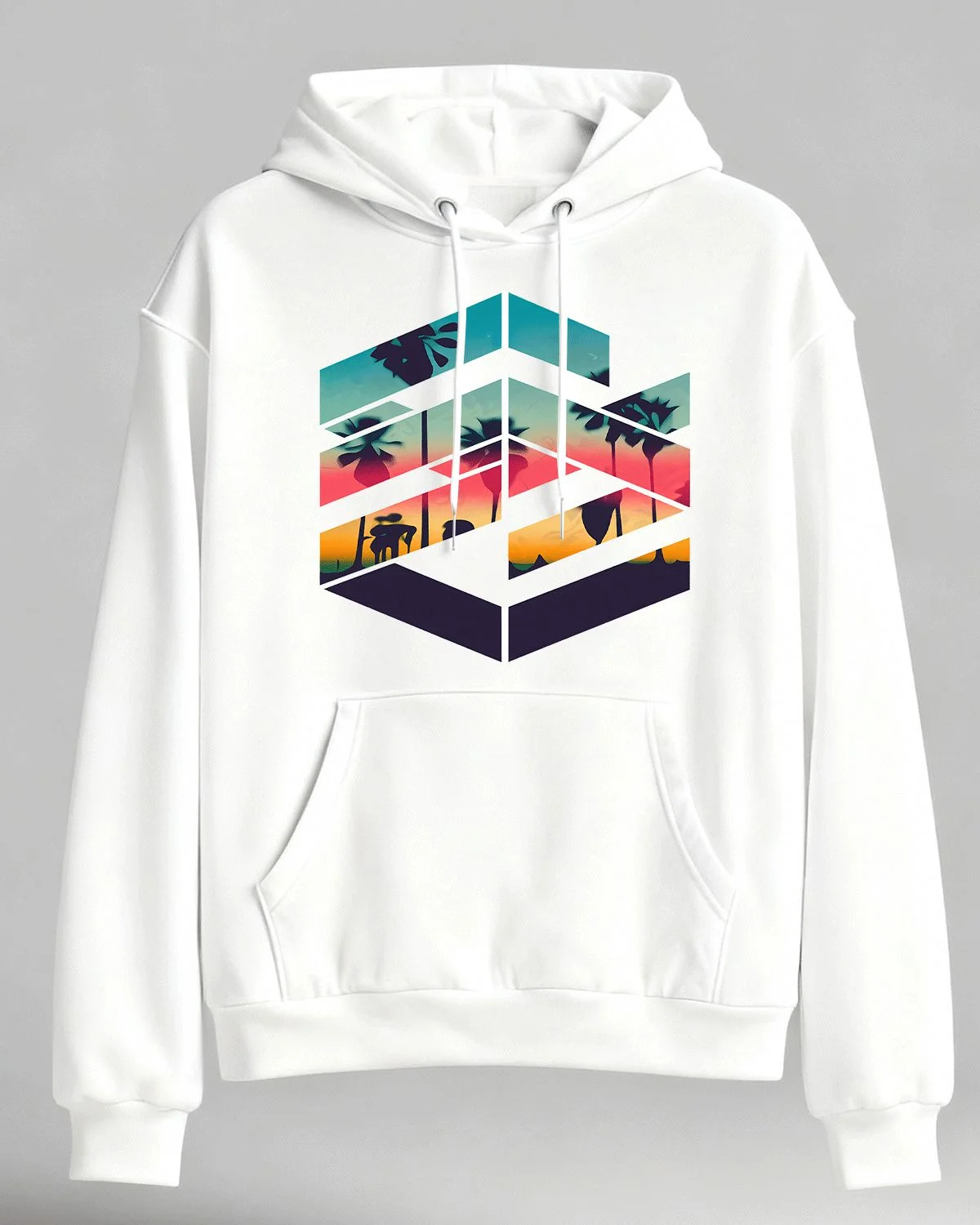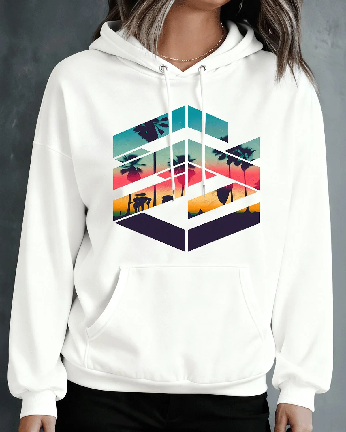 Sunset Palm Trees Cozy Graphic Hoodie for Men and Women - Casual Vintage, Long Sleeve, Soft Fabric, Comfortable Fit