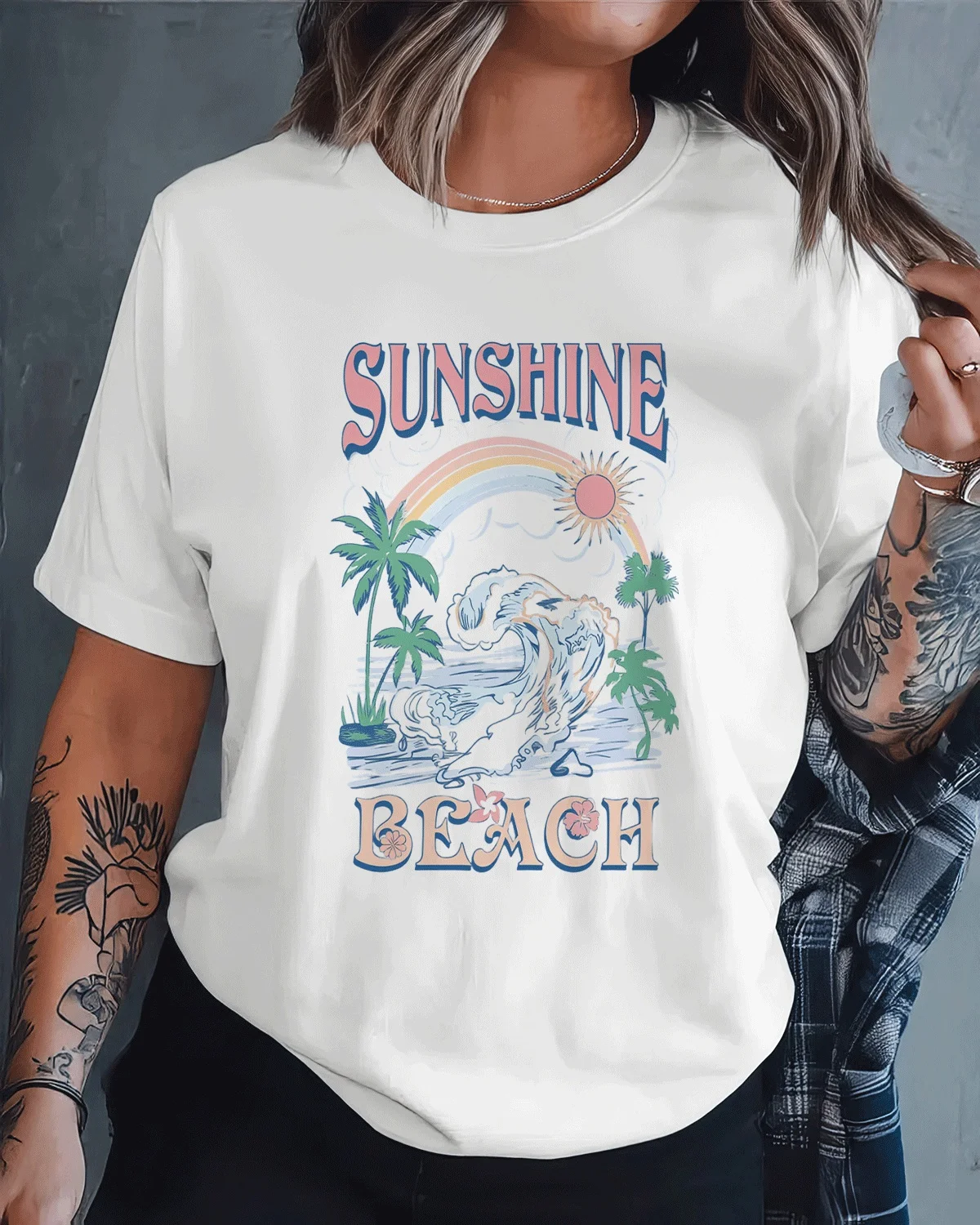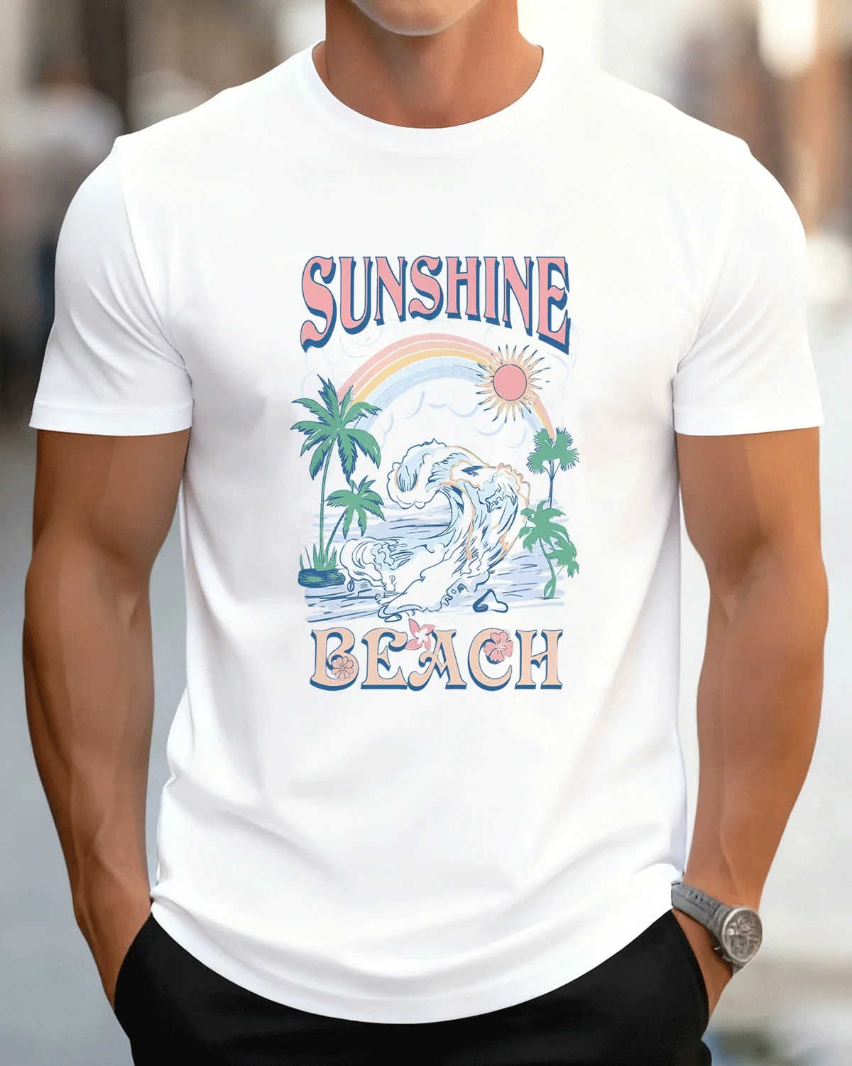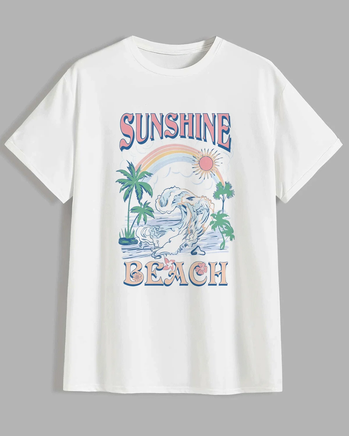 Sunshine Beach Summer Cotton Graphic T Shirt-Casual Vintage,Short Sleeve,Soft Fabric,Comfortable Fit