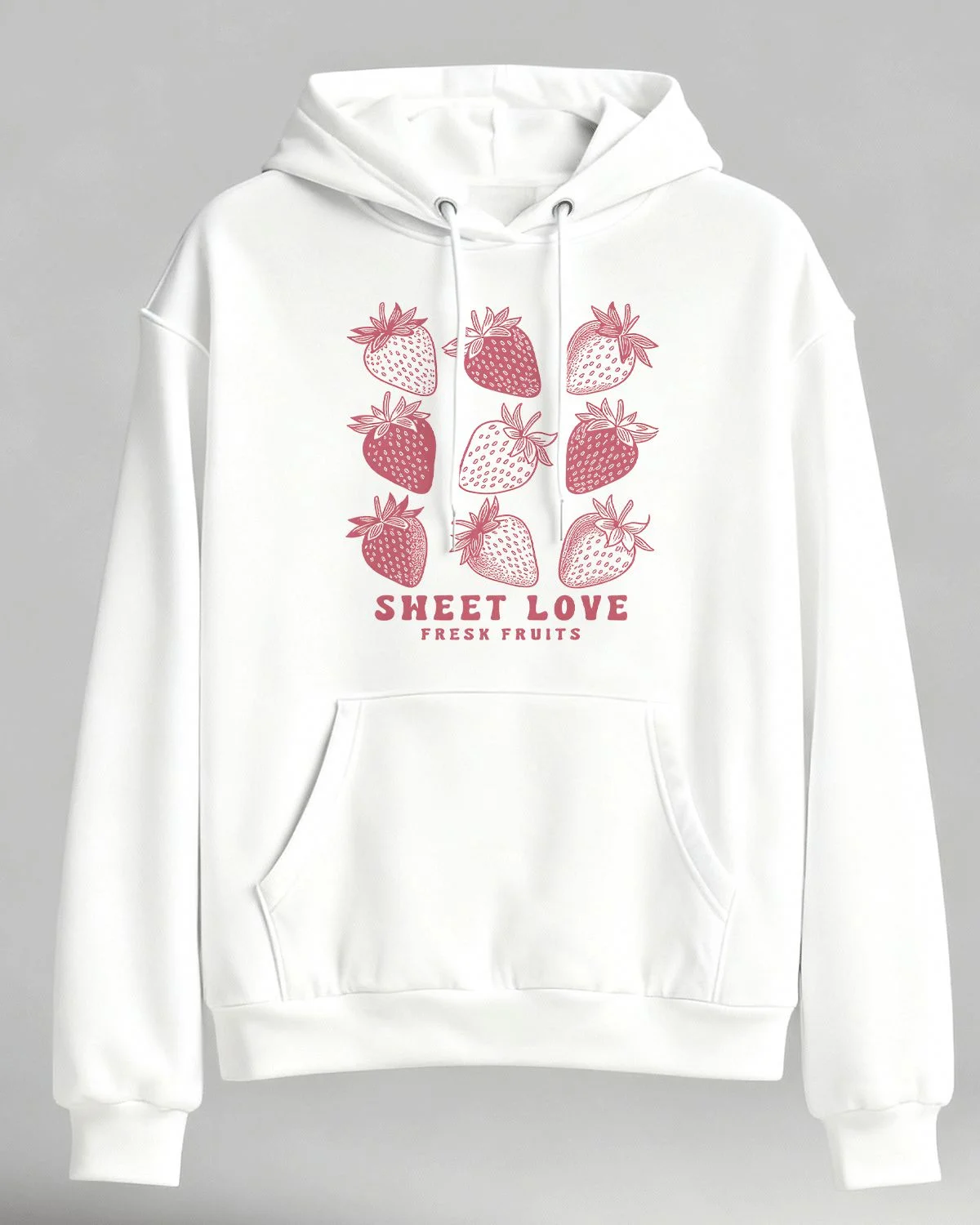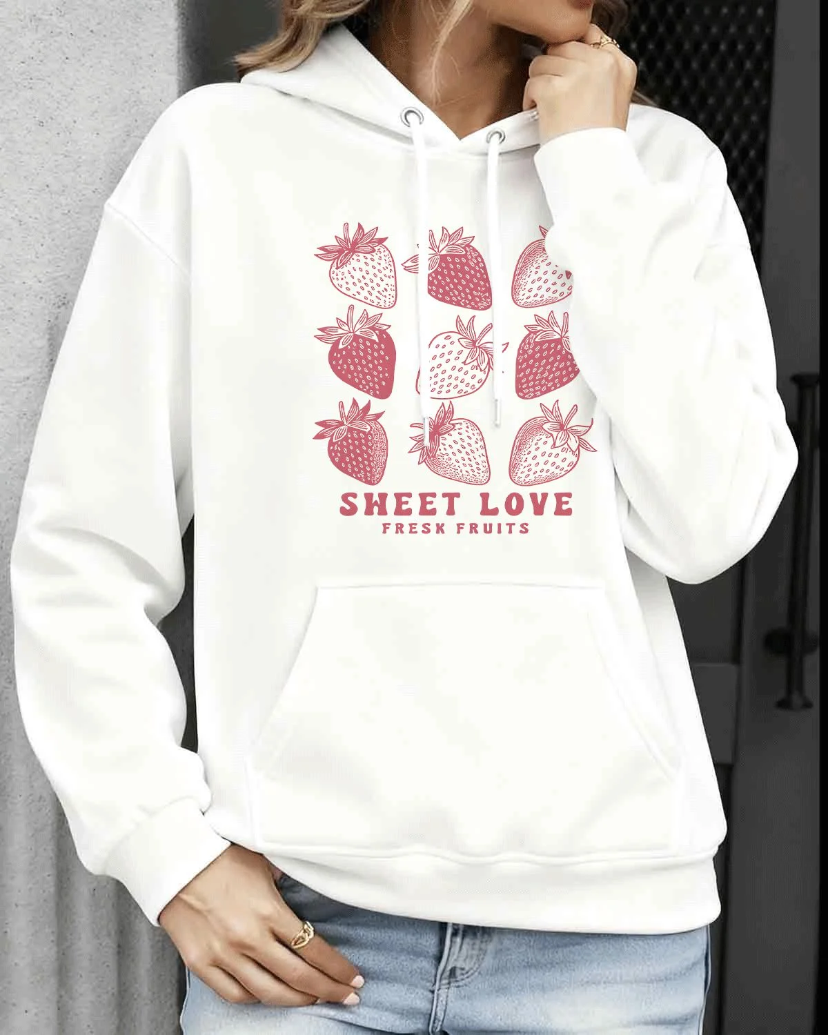 Sweet Love Fresh Fruits Cozy Cotton Graphic Hoodie with Pocket-Casual Artistic,Long Sleeve,Soft Fabric,Comfortable Fit