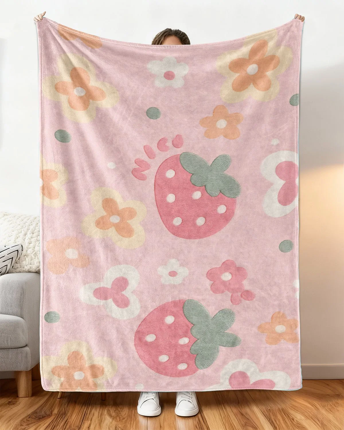 Holiday Wreath and Floral Love Gift Cozy Flannel Blanket-Cozy Classic,Plush,Warm,Lightweight,For Couch,Bedroom Use
