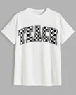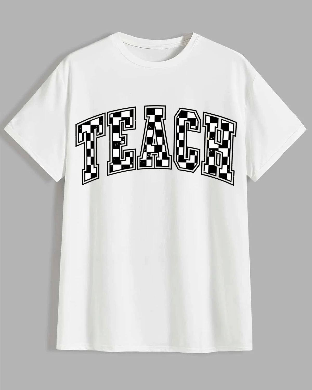 Teach Checkered Letters Summer Cotton Graphic T Shirt - Casual Vintage,Short Sleeve,Soft Fabric,Comfortable Fit