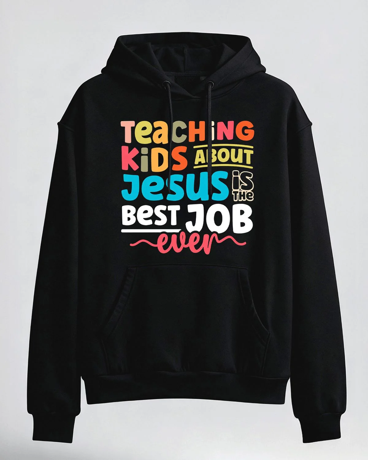 Teaching Kids About Jesus Is the Best Job Ever Summer Cozy Graphic Hoodie-Casual Vintage,Long Sleeve,Soft Fabric,Comfortable Fit